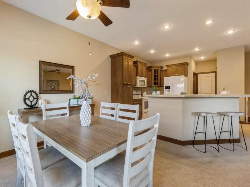 Welcome to Stonecrest Meadows Townhomes! This well-maintained MJ Properties resale has been lovingly cared for over the past 16 years and it shows. Situated within walking distance to the Ankeny Sports Complex and Ashland Ridge Elementary, this stunning three-bedroom, three-bath ranch home is move-in ready. Upon entering, you'll be impressed by the upgraded woodwork on the fireplace and window trim, complemented by an open floor plan ideal for entertaining and family gatherings. The main level offers two bedrooms, including a spacious primary suite with a jet tub, shower, dual vanities, walk-in closet, and private access to the deck. Unwind in the great room, featuring a cozy gas fireplace. The kitchen offers a C shaped island with a bar-height top, abundant cabinet space, pull-out pantry shelves, a roomy dining area, and all appliances included. The finished daylight basement boasts a second great room with a fireplace, a third bedroom, a full bath, and plenty of storage space. Townhomes in this community rarely hit the market, so don't miss out on this one!
