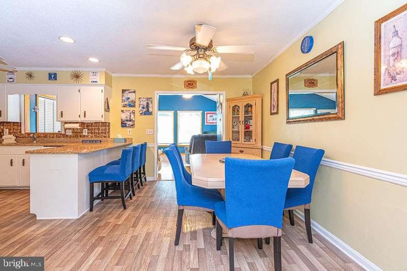 JUST REDUCED! This is the one you have been waiting for. One level living on over 1500 sq. ft. of living space plus a 322 sq. ft. sun room! Wonderfully maintained 3 bedroom/2 bath single family home just off of Rt 54 in Selbyville DE, near the Bayside community, well known for the Freeman Stage entertainment facility. Enter this home into the large living room, next to the kitchen with updated solid surface countertops with a close by spacious dining area. This leads to a large family room and then onto another large 3 season room with almost wall to wall glass that brings in so much light! Exit the 3 season room to the outside deck which leads to a private, peaceful back yard. The bedrooms are large and the primary has an ensuite bathroom for your privacy. The Bayside Estates Community has many amenities including an inground pool, clubhouse, kids play area, tennis/pickle ball courts, and a boat ramp. All of these for a yearly HOA fee of $400! This home comes fully furnished so you may enjoy it from day One. Just 6 miles to beach and many, many great restaurants nearby. This is a home you do not want tom miss out on, see it soon before it is SOLD!
