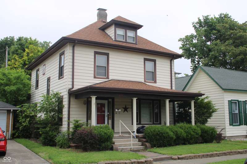 Step into a piece of history with this Traditional American Foursquare, full of timeless charm and ready for your personal touch. This home showcases beautiful original woodwork, vintage glass doorknobs, and elegant pocket doors that speak to its classic craftsmanship. While it could use some cosmetic updates, it offers great bones and incredible potential for restoration or renovation. The walk-up attic provides generous storage or could be transformed into a cozy studio, guest suite, or additional living space. Both the front and back porches are covered, perfect for enjoying morning coffee or evening relaxation in nearly any weather. The fenced backyard offers privacy and space for pets, gardening, or outdoor entertaining. A detached garage and carport provide convenient off-street parking. Located just minutes from all the amenities of Downtown Rushville, this home is a unique opportunity for anyone looking to blend historic charm with modern updates. Come see the possibilities and make this one your own!