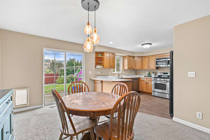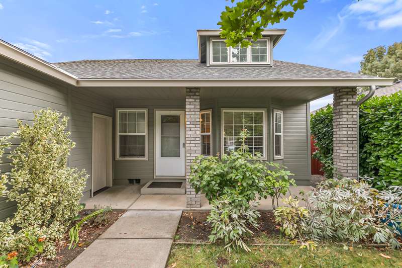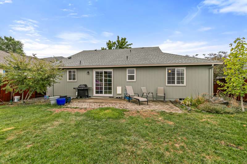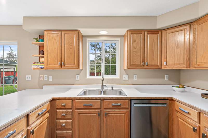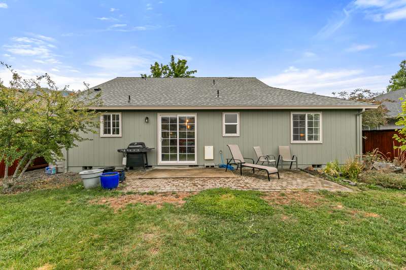 Tucked away on a quiet cul-de-sac in Talent is 1557 Summer Place. She is picturesque with a stoic maple tree, fresh coat of paint and newer roof. Once inside, you will find an open and bright living space brought to life by a large bay window and skylights. The kitchen boasts oak cabinets and newer appliances. The glass sliders beckon you from the dining area out to the back yard where you'll find a playhouse, raised garden beds, fruit trees, a water feature and unobstructed views of Grizzly Peak. Back inside you can settle in to your large primary suite with custom built-in shelving and crown moldings. Two additional bedrooms and a bathroom complete the package. She's a sweet home you won't want to miss.