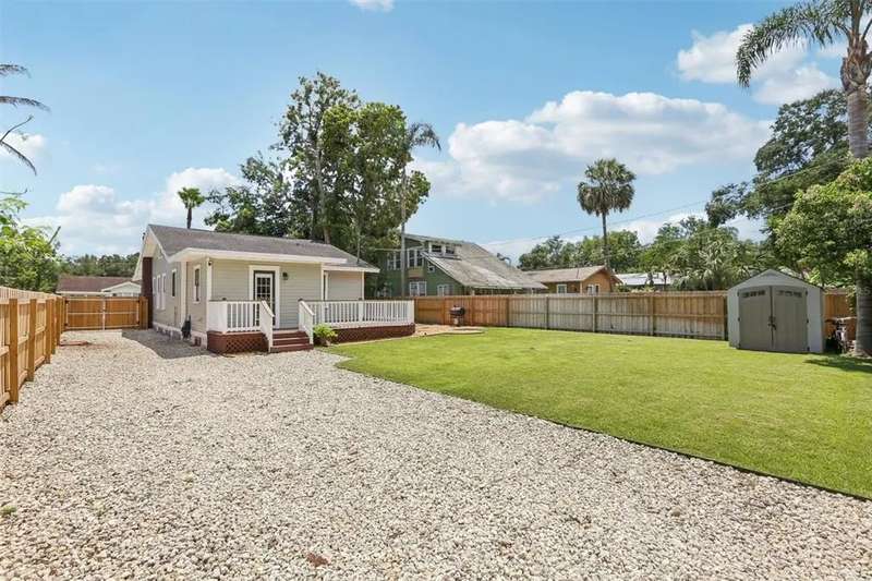 **Timeless Charm Meets Modern Comfort in the Heart of Seminole Heights!** Step into this beautifully updated 1925 wood-frame bungalow offering the perfect blend of vintage character and contemporary living. With 2 spacious bedrooms and 2 full baths—including a private en-suite and walk-in closet in the primary suite—this home is designed for comfort and functionality. You'll love relaxing on the inviting front porch or entertaining in the wide, open living area that flows seamlessly into a generous dining room and a large, well-equipped kitchen. Situated on a deep 60x133 ft lot, the fully fenced backyard is a private retreat, featuring a manicured lawn, expansive deck, and plenty of space to unwind or entertain. With gate access from both the front and rear (E Wilder Ave), you'll enjoy unmatched flexibility for parking multiple vehicles, your RV, or even a boat. Recent updates include fresh interior/exterior paint, a newer roof, and HVAC—ensuring peace of mind for years to come. Located just minutes from I-275, downtown Tampa, Water Street, Armature Works, and all the eclectic restaurants and bars that make Seminole Heights one of Tampa’s most desirable neighborhoods.