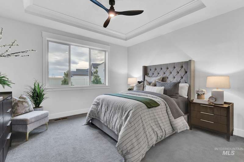 Avalon model | Blackrock Homes. ~~ DECORATED MODEL ~~ Large windows seem to invite the outdoors in with this stunning single level home. Upscale finishes include undercabinet lighting, covered patio and lots of tilework in the discreet Primary Suite. Two secondary bedrooms share a convenient Main Bath. Professionally landscaped and fenced yard. Gated Community includes a private park w/ large picnic pavilion, fenced dog park and water feature. Walking distance to the 64-acre Discovery Park w/ pickleball, tennis courts, 2 dog parks, walking paths, etc. & close proximity to local public golf courses, South YMCA and new Albertsons Grocery. Pics & Tour are similar. Furniture not included.
