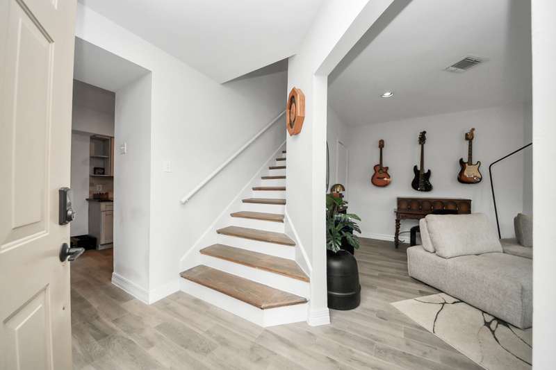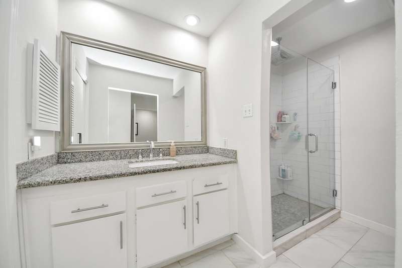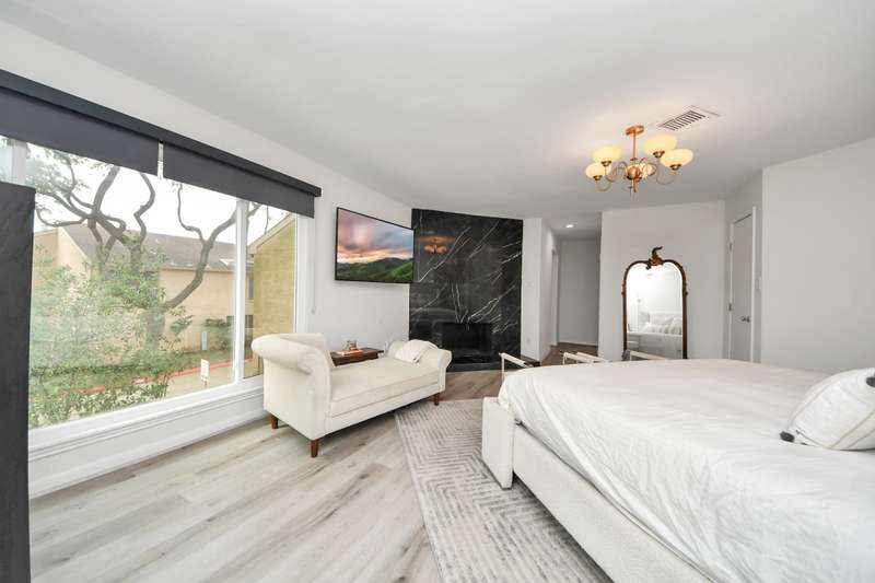 This beautifully updated home features hardwood-look tile floors, fresh interior paint, granite countertops with a stone backsplash, a custom wine rack, and a fully remodeled primary bath with a seamless walk-in shower. The staircase has been redone with wood, new double pane windows and major systems like the roof, AC unit, water heater, and underground pipes have all been recently replaced. Upstairs offers two bedrooms with en-suite baths, including a spacious 22x20 primary suite with a fireplace, plus a half bath downstairs. Enjoy a covered patio off the dining area that leads to a two-car garage and guest parking, all within walking distance to parks, HEB, Torchy’s Tacos, and La Madeleine.