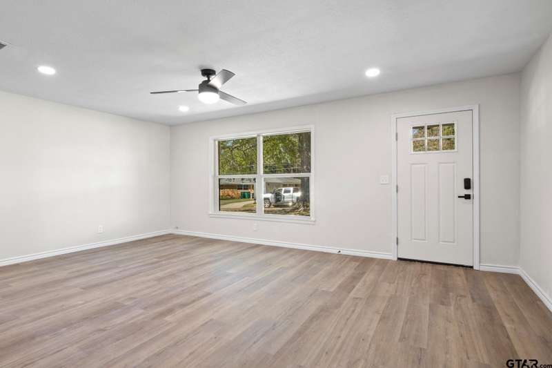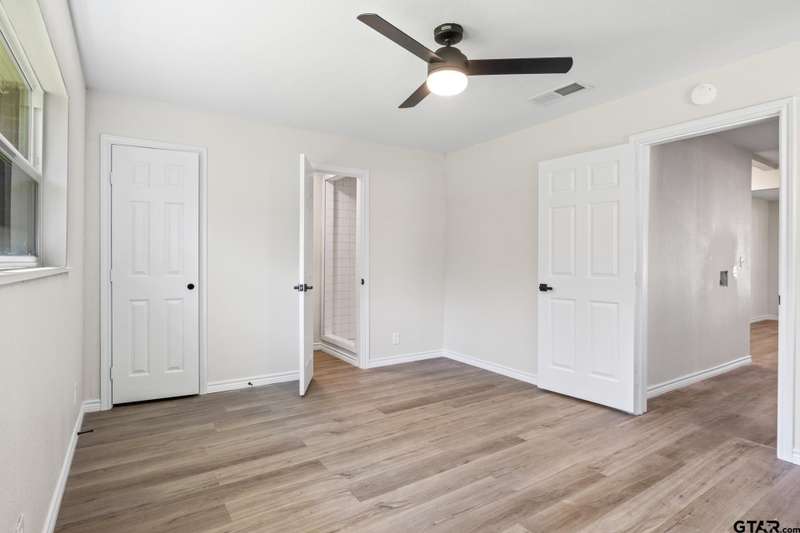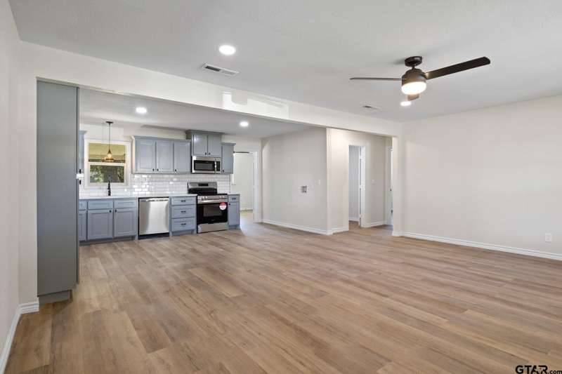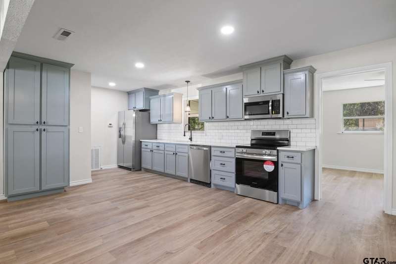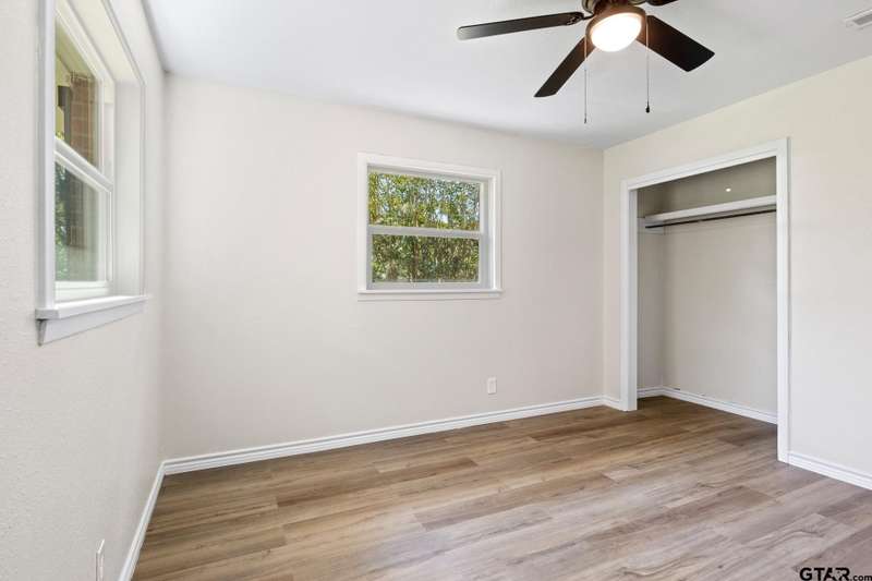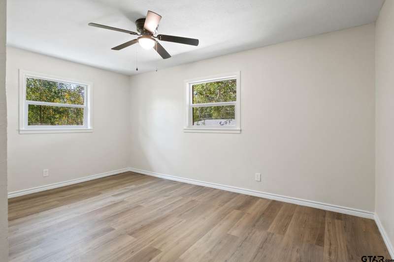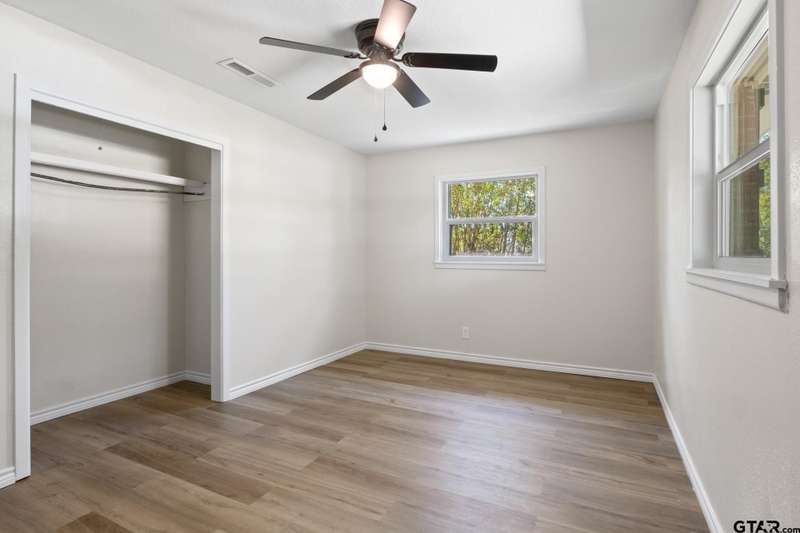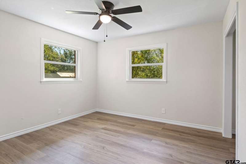 Welcome to this charming 3 bed, 2 bath home in Hughes Springs! This property has been recently updated with attention to detail, boasting a seamless blend of comfort and modernity. New flooring flows throughout the house, complemented by natural sunlight streaming in through new windows. The chef's kitchen boasts new stainless steel appliances, perfect for meal prepping. The open living and dining area is ideal for entertaining loved ones, while the primary bedroom offers a private retreat with its own ensuite bath featuring a tile shower. Two additional cozy guest rooms share a hall bath, perfect for accommodating family or guests. Step outside to the back porch and enjoy watching the kids play in the fenced yard. Noteworthy updates include a new HVAC system, roof, doors, and electrical service. This home is truly a haven for those seeking comfort and convenience. Don't miss the opportunity to make this your new home sweet home - call today to schedule your showing!