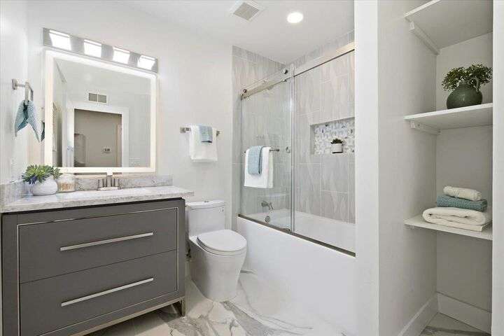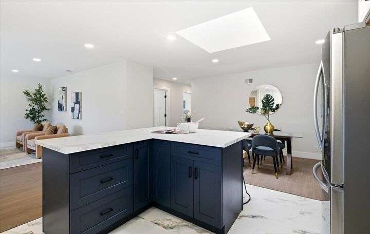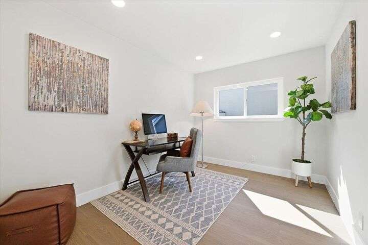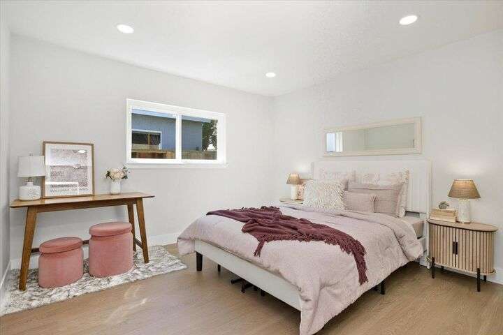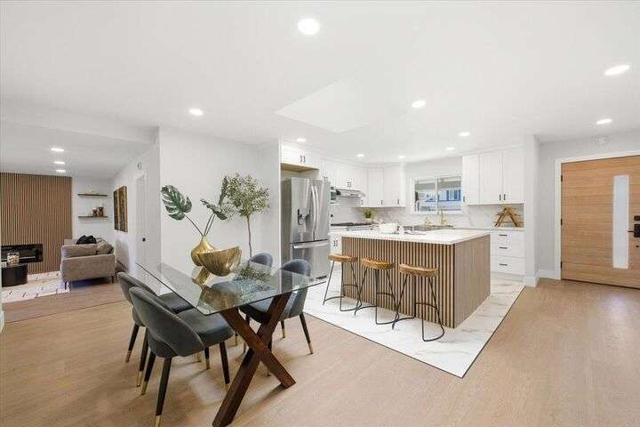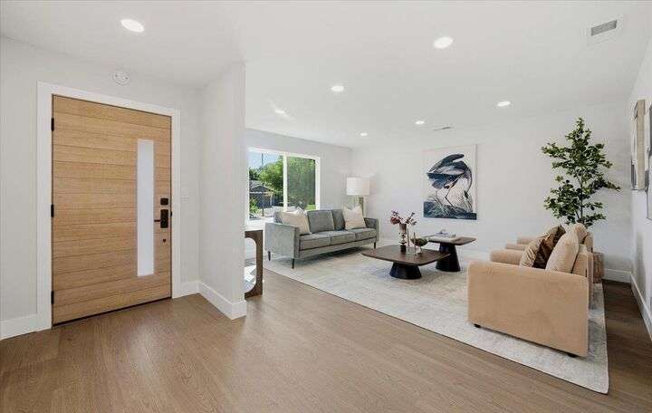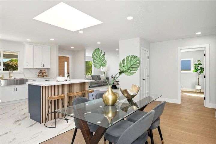 Tucked on a peaceful cul-de-sac street on the coveted foothill side of Santa Teresa Blvd, this 4-bedroom, 2-bath California Ranch radiates modern elegance and timeless charm. Every detail has been thoughtfully upgraded: Milgard double pane windows flood the open floor plan with natural light, while smooth textured walls and skylit spaces create an airy, contemporary feel. The heart of the home is a chefs dream kitchen featuring a deep farmhouse sink, gleaming stainless steel appliances, expansive stone countertops, and a generous center island perfect for gathering. Both bathrooms showcase spacious, spa-inspired designs with high-end finishes. Additional upgrades include a composition shingle roof, fresh interior/exterior paint, indoor laundry, and an oversized 2-car garage with room for storage or a workshop. Step outside to professionally designed new landscaping and hardscaping that frame the private backyard oasis ideal for al fresco dining or quiet foothill evenings. This move-in-ready gem blends foothill tranquility with turnkey luxury.