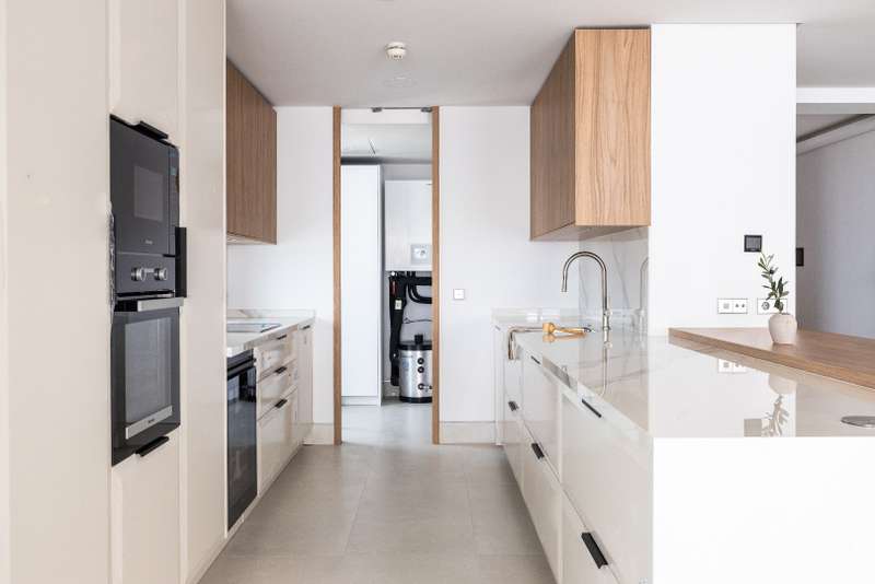 Welcome to this exquisite apartment located in the middle on the fifthteenth floor of a stunning new-built luxury front-line development in the beautiful city of Malaga. This apartment boasts breathtaking panoramic views. This property features three spacious bedrooms, two of which come with en-suite bathrooms and walk-in closets, while the third bedroom enjoys access to a complete bathroom steps away. As you step into the apartment, you will be greeted by a modern and stylish kitchen featuring a convenient breakfast bar. The separate laundry room is a practical addition to the home, providing ample space to take care of all your laundry needs. The elegant dining and living room areas are perfect for hosting gatherings and relaxing with family and friends. The master bedroom and living area offer direct access to a large terrace, providing stunning views of the surrounding area. With its sleek and contemporary design, this apartment is the epitome of luxury living in Spain.
