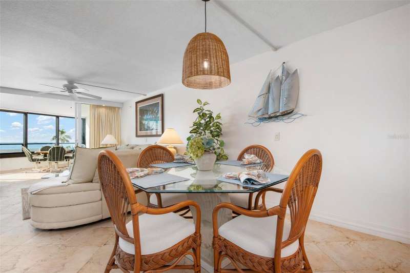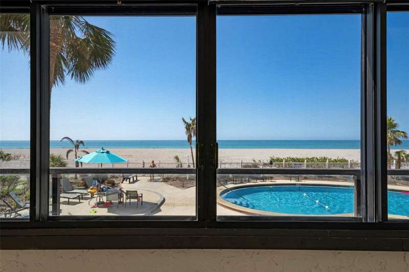 Embrace the ultimate beachside lifestyle in this fully furnished, turnkey 2-bedroom, 2-bathroom condo, offering unparalleled views of Venice Beach. Recently updated, this beautiful condo features a stately modern kitchen with Corian countertops, solid hardwood cabinets, a dry bar, desk area, sleek newer appliances and a dark stainless-steel refrigerator. Both bathrooms are beautifully appointed with the same high-end finishes, including granite counters and solid hardwood cabinetry. The entire condo is adorned with elegant travertine tile throughout—no carpet to worry about! The Sansovino has the best location on the beach, with Gulf and Intercoastal views, making it an incredibly rare find. Enjoy the open floor plan that fills with natural light and relax on your private balcony while taking in the spectacular beach views and breathtaking sunsets. With large walk-in closets, ample storage, and everything you need for a move-in ready experience, this condo offers the ultimate in convenience and luxury. The open floor plan and full lanai windows (complete with both glass and screens) and sliding glass doors allow you to enjoy the fresh ocean air, making it easy to take in the stunning ocean views from nearly every room. Whether you’re relaxing on your private balcony, enjoying the spacious living area, or taking in the sights and sounds of the beach, this home truly offers the ultimate in coastal living. You’re just minutes from historic downtown Venice with its vibrant shops and restaurants, and close to downtown Wellen Park and the new Atlanta Braves stadium. Community amenities include a private beach, heated pool, a grilling area, and a newly updated clubhouse. Don’t wait—schedule your showing today!" Live the beachside dream in this beautifully updated condo. Welcome Home!