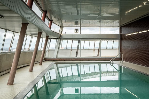 Located on the 18th floor of the Super Italie Tower, an architectural landmark in the 13th arrondissement of Paris in the Maison Blanche district, this atypical 94.4 m2 (1,000 sq ft) two-bedroom apartment offers a rare living environment, combining contemporary comfort and unique architecture. The residence designed by architect Maurice Novarina boasts a unique feature: a suspended swimming pool on the top floor, exclusive to its residents.