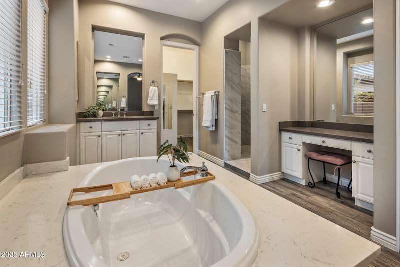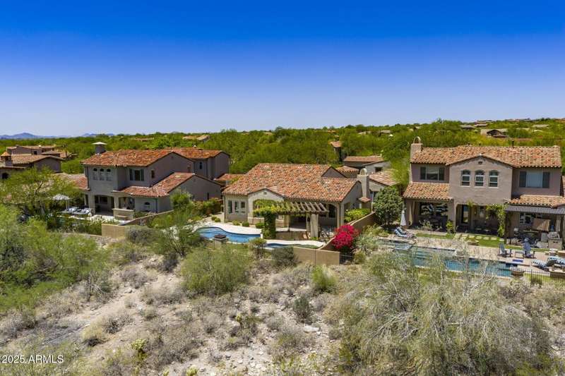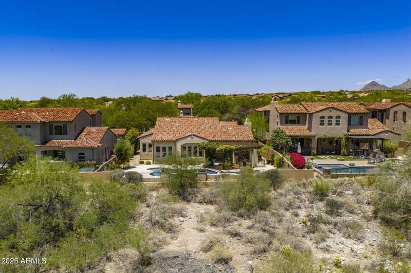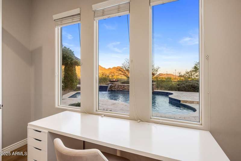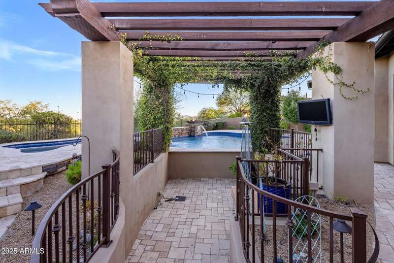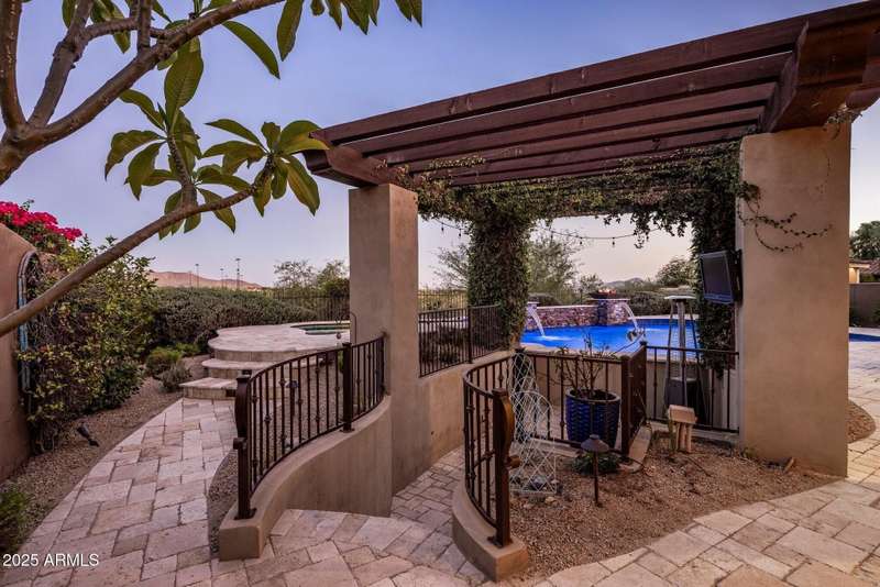 **Luxurious Gated Escape with Breathtaking Views**Welcome to this exquisite home located in a prestigious gated community, DC Ranch Haciendas. Enjoy unobstructed mountain and city views from the comfort of your beautiful, single-level residence. This stunning property features 3 spacious bedrooms, complemented by 2 versatile bonus rooms, perfect for an office and/or guest space. Step outside to your private oasis, complete with a sparkling pool, rejuvenating spa, and stylish swimming bar, ideal for entertaining or relaxing in the sun. With a convenient two-car garage, this home combines luxury with practicality. Don't miss the opportunity to experience urban living surrounded by natural beauty!