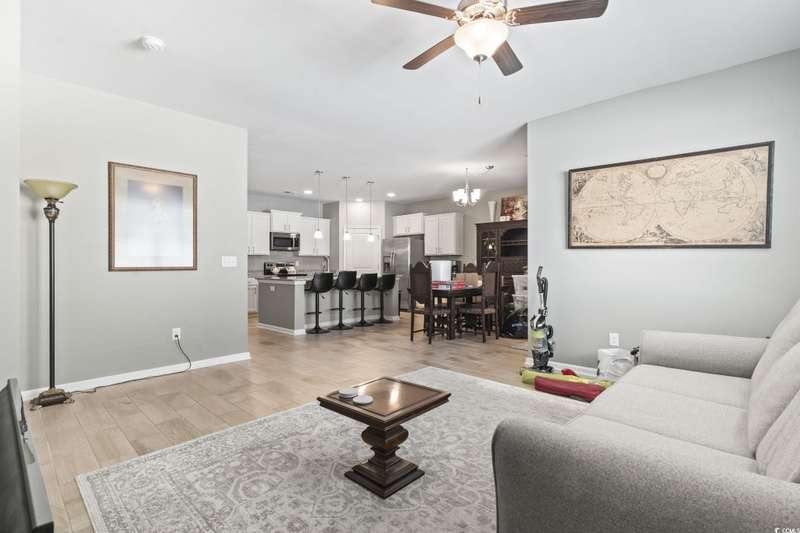This is the Claiborn Model. A Beautiful layout with 4 bedrooms and 2 bathrooms all on the first floor! Walk through the front door and the complete layout flows nicely. This home shows as new! The well-equipped kitchen has stainless appliances, center island with breakfast bar. All Bedrooms are on first floor. The Retreat @ Ocean Commons is a short drive to the beach (see drone picture), stores, shopping, airport, restaurants. A very quiet neighborhood. Surfside Beach is known as the Family Beach! Brand New roof in 2025. All square footage should be verified by the buyer
