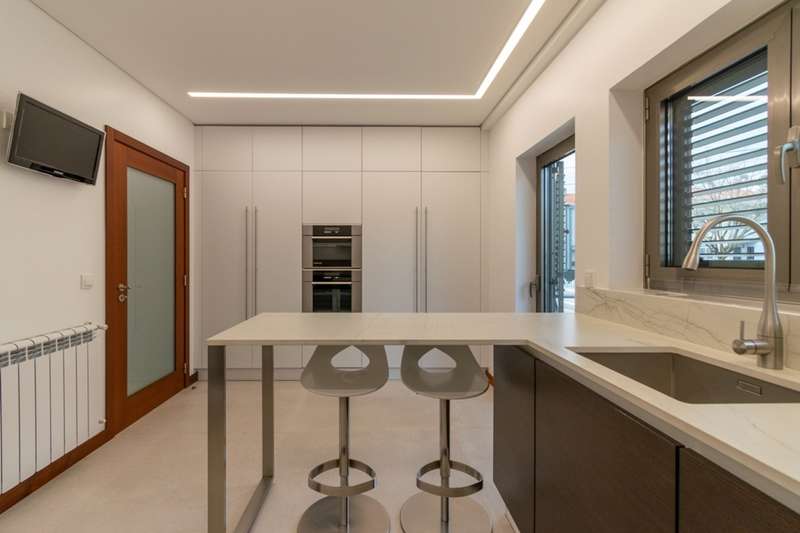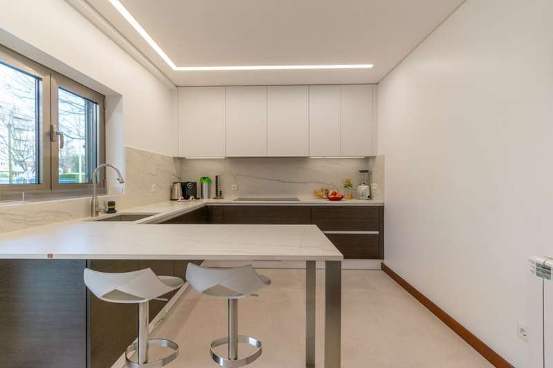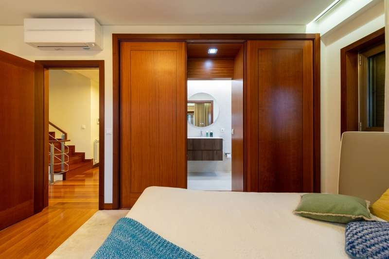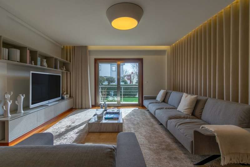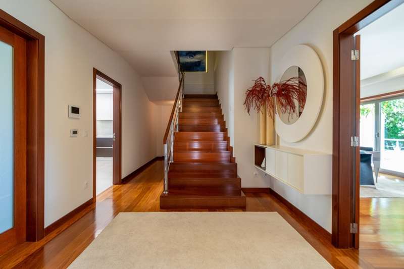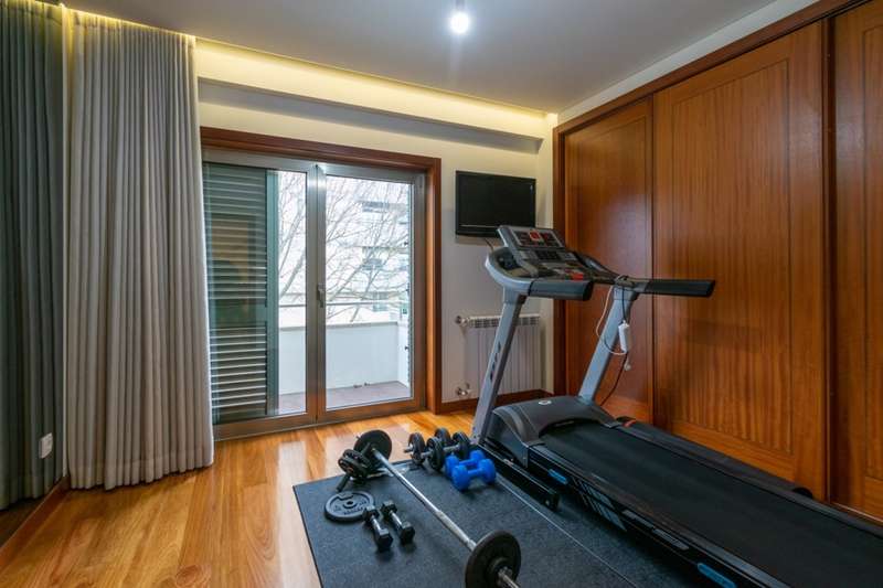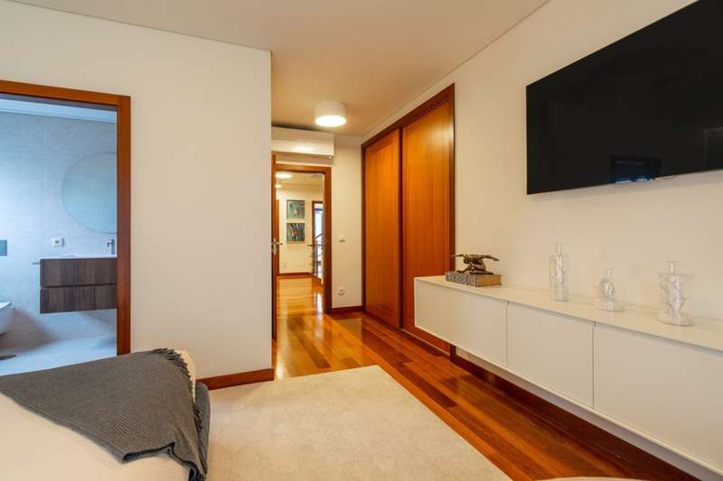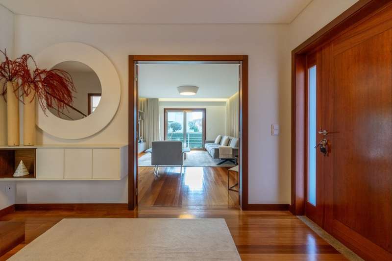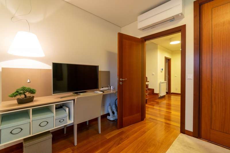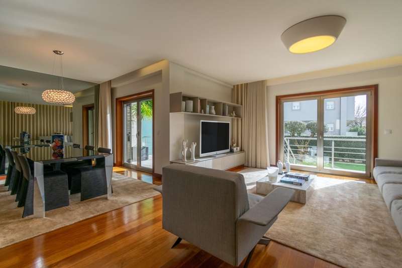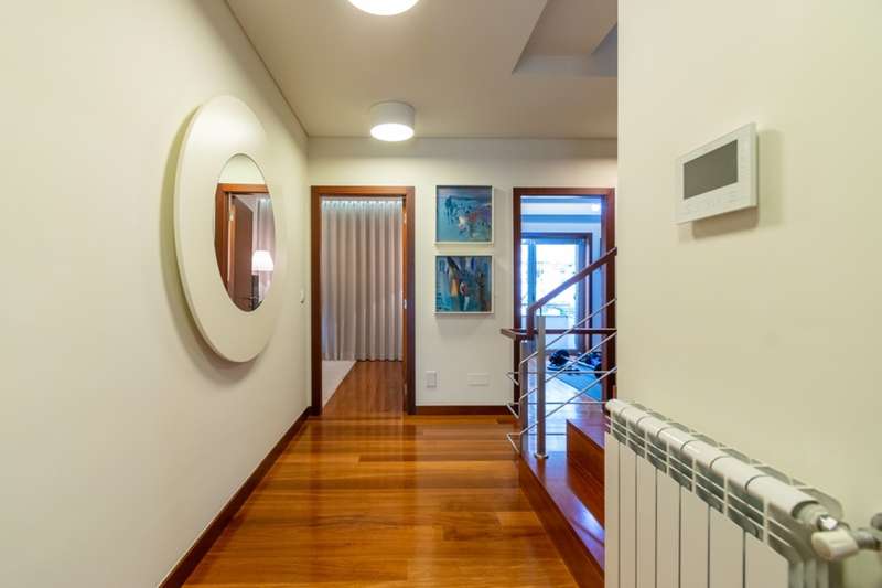 House with garden, in excellent condition, recently refurbished, with modern, quality materials and comfort features such as central heating and air conditioning. Consisting of three floors, on the ground floor there is a garage for four cars, a full bathroom, a laundry room and a storage area. At the entrance level is the social area of the house, which consists of a large living and dining room with south-facing balconies and access to the garden and outdoor spaces. This floor also houses an office and a fully equipped kitchen. On the top floor, the villa has four bedrooms -all with balconies - two of which are en-suite. Residential location, about 5 minutes from the Metro line, Efanor school and Norte Shoping. CHARACTERISTICS: Plot Area: 356 m2 | 3 832 sq ft Deployment Area: 108 m2 | 1 163 sq ft Building Area: 315 m2 | 3 391 sq ft Bedrooms: 4 Bathrooms: 5 Garage: 4 Energy efficiency: A