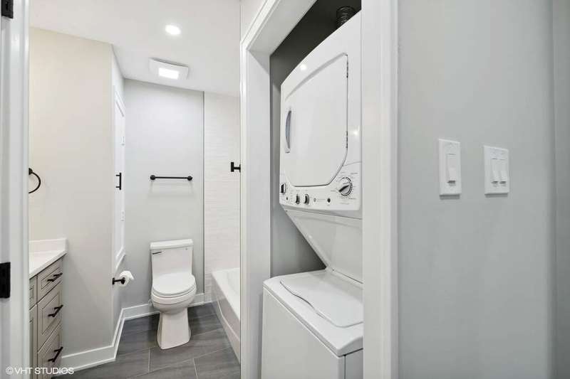 Welcome to this well-maintained 1-bedroom, 1-bath unit, ideally located in downtown Lombard. Just steps from the Metra Train Station, shopping, restaurants, and the Prairie Path, this home offers unmatched convenience. Inside, you'll find a thoughtfully updated interior featuring a modern kitchen with quality cabinetry and appliances. The bathroom has been renovated with an upgraded vanity, bathtub, and toilet. For added convenience, enjoy the in-unit washer/dryer. The living room is designed for comfort and relaxation, complete with a mounted 65-inch TV, while recessed can lighting brightens the home throughout. Don't miss this opportunity to live in a stylish, move-in ready space with everything Lombard has to offer right outside your door. Schedule your showing today!