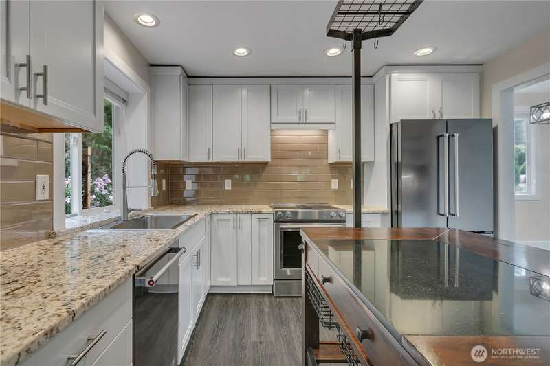 *NEW PRICE* Fully remodeled 3bed 2.5bath home on .40 acres w/3car garage & sauna. Covered front porch opens to the great room's soaring ceilings w/skylights. Quality millwork & flooring stretch throughout in designer colors. Chef's kitchen features granite counters, modern shaker cabinetry & SS appliances including sleek downdraft electric range. Fully-fenced backyard oasis, backs partially to a greenbelt w/Dog Run. Two tiered deck w/built in lighting surrounded by lush gardens that bloom all season & steps away from Lg firepit area, also wired for Hot Tub. 2 storage sheds w/roll up doors offer ample space; possible outdoor bar/kitchen! New roof & paint in 2022, plus A/C, newer water heater & RV/boat parking. Easy hwy-18 access & NO HOA!