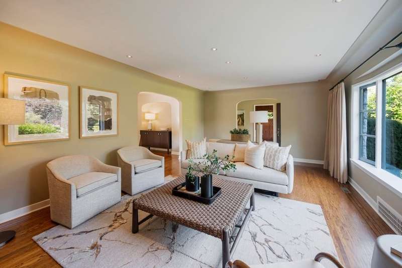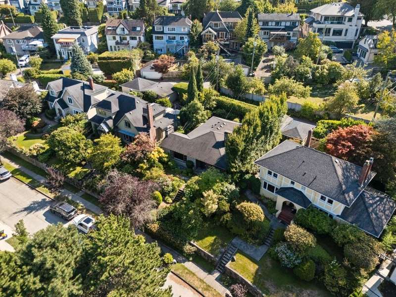Located in coveted Point Grey, this lovingly restored 1941 home sits on a 60' x 105' lot along a beautiful tree-lined street. Thoughtfully updated by David Clarke to preserve its authentic character, the main level offers 3 bedrooms + den, a full bathroom, and a large living room and dining room off the kitchen. Original nailed oak hardwood floors, fluted glass doors, exposed hardware, cast iron sink, and Solus fireplace surround highlight the charm of the original home. The updated kitchen opens to a low-maintenance provencal style south-facing garden with a single car garage. Lower level offers potential for a 1-bedroom suite with separate entry or a rec room/playroom. Steps to WPGA, OLPH School, 10th Avenue amenities, and transit to UBC or downtown. Open House Saturday Sept 6th 2-4 PM.