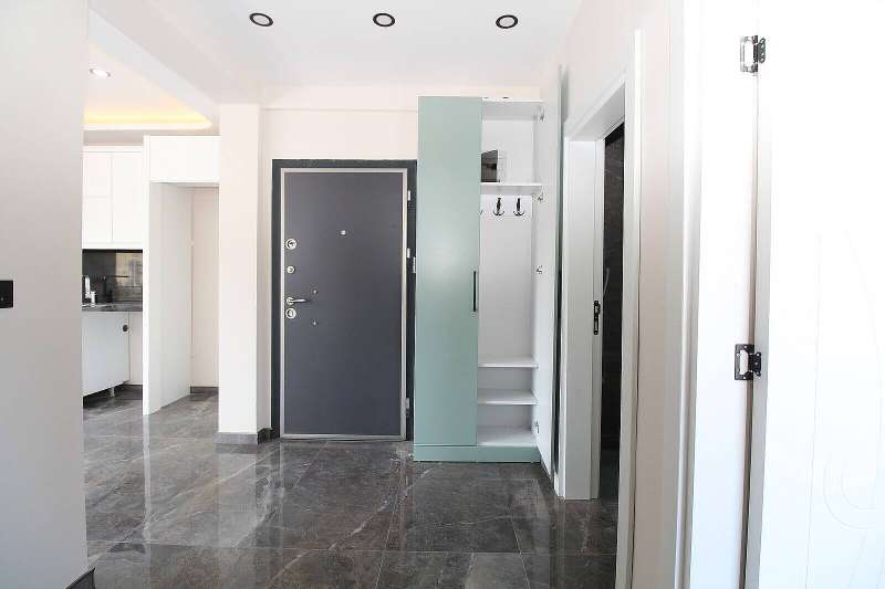 One and three-bedroom properties consist of a living room, an open-plan kitchen, one or two bathrooms, and a balcony. Modern properties are equipped with steel entrance doors, lacquered interior doors, LED and spot lighting, blinds, mosquito nets, air conditioning infrastructure, cloakroom, TV unit, bed base and headboard, wardrobe, kitchen cabinets, intercom system, and central satellite system.