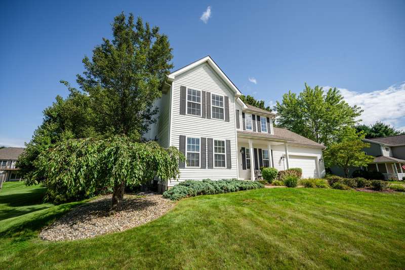 Discover the perfect blend of comfort, updates, and lifestyle in this 4-bedroom, 2.5-bath traditional 2-story home located in the award-winning Mattawan School District. The main level features a spacious living room with a gas log fireplace, a formal dining room, and a private office, all enhanced by new LVP flooring (2024). The kitchen and dining area open to an expansive composite deck overlooking a backyard with mature shade trees, firepit, and 10x12 shed. Upstairs, all bedrooms feature cork flooring, highlighted by a primary suite with soaking tub, walk-in closet, and full bath. The daylight lower level expands your living space with a family room (new carpet) and is plumbed for a future bath. A 2.5-car garage offers extra room for storage, tools, or hobbies. Just minutes from Texas Corners farmers market, many locally owned restaurants, and less than 30 minutes to downtown Kalamazoo. No HOA fees! Major updates include roof (2020), furnace, A/C, and water heater (2024).