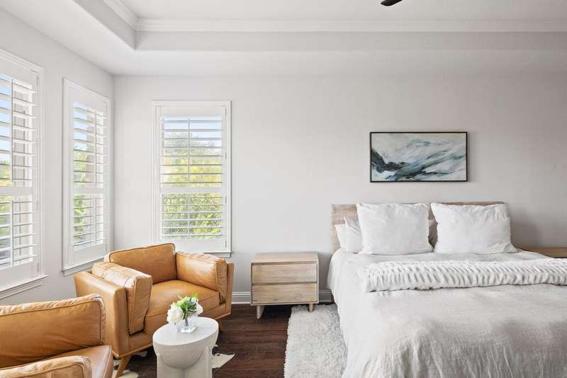 The primary suite offers a remodeled spa-like bath with designer finishes, dual vanities, and two generous walk-in closets. Upstairs you'll find two additional bedrooms, a full bath, a game room, and a media room ideal for movie nights or play. The office on the main floor could easily serve as a fifth bedroom.