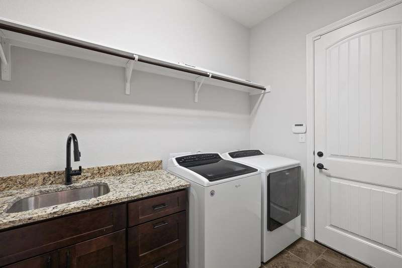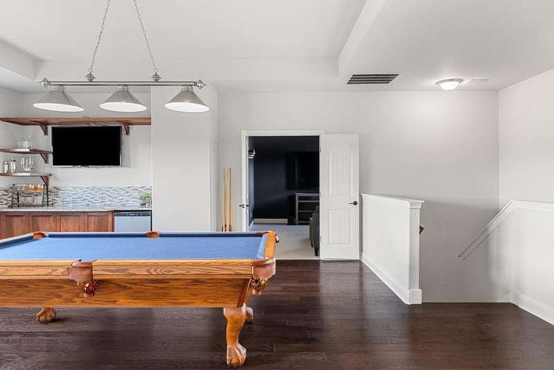 Step outside to enjoy an impressive backyard retreat. Multiple covered living spaces include an upstairs outdoor kitchen and lounge, along with a 600+ sq ft cabana featuring a vaulted ceiling, full outdoor kitchen, and stone fireplace with TV mount. Overlooking the pool and hot tub, this private oasis is perfect for gatherings year-round. A three-car garage and extended driveway with an in-ground basketball hoop add everyday convenience.