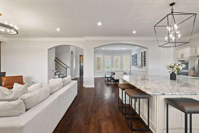 Situated on a beautifully landscaped three-quarter-acre lot in Rough Hollow's Lakeway Highlands, this home is designed for both everyday comfort and resort-style living. A gated entry leads to a private casita with a full bath--perfect for guests, extended family, or a home office. The main residence features an open floor plan with an expansive kitchen anchored by an oversized island, seamlessly connecting to the dining and living areas for effortless entertaining.