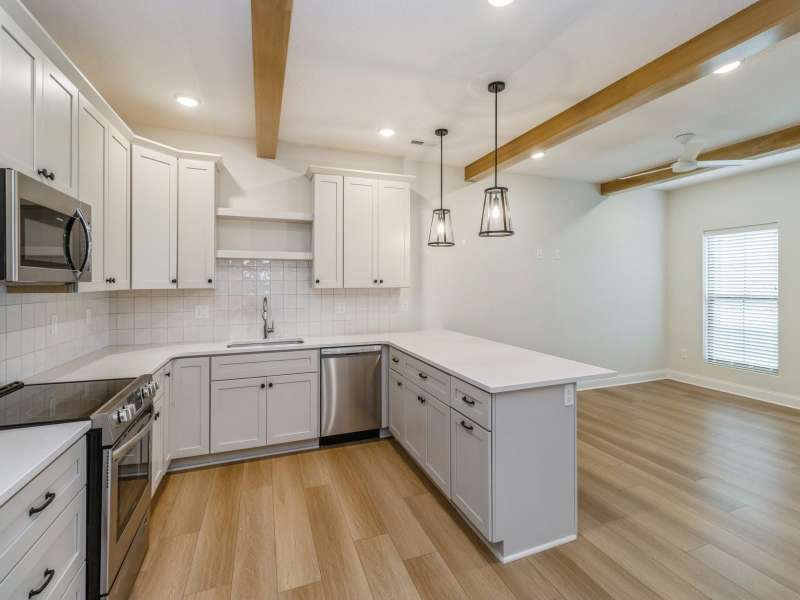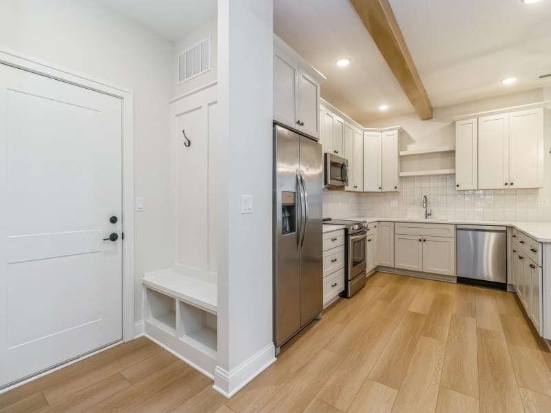 As good as new! Step into this stunning Caliber townhome in Calusa at Timberline Village that effortlessly combines style, sophistication, and functionality. The open-concept kitchen shines with quartz countertops, custom cabinetry, stainless steel appliances and a walk-in pantry. The living area features 9 ceilings, large windows, a half bath and drop zone off the oversized two-car garage. Upstairs, the primary suite offers a spa-like bath with double quartz vanities, a tiled walk-in shower, and a spacious walk-in closet. Two additional bedrooms and a laundry room add functionality and style. Upscale finishes like luxury vinyl plank flooring, custom trim, and upgraded carpets complement this homes modern design. Located in a prime location with convenient access to all area amenities!