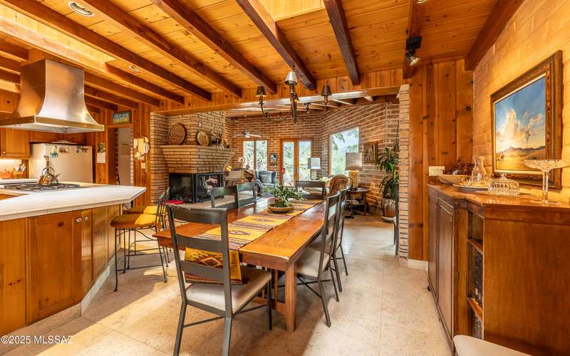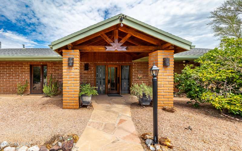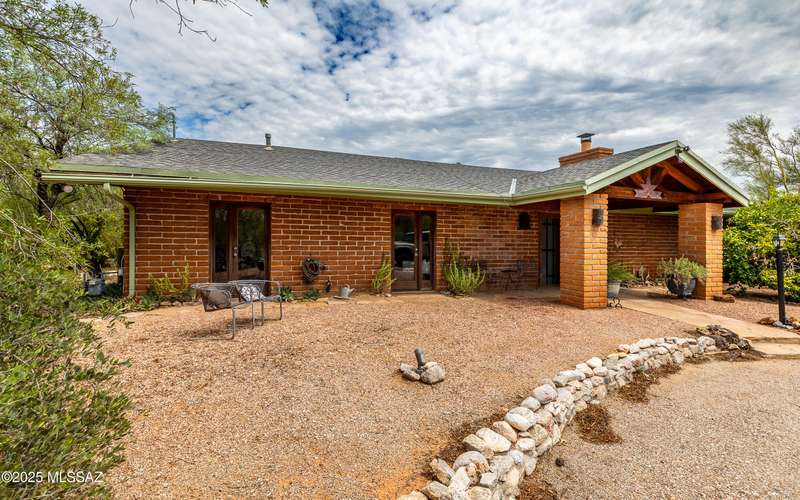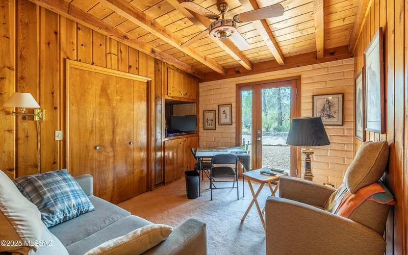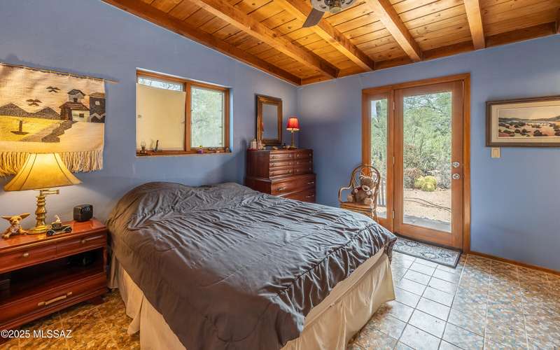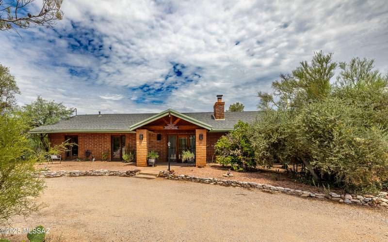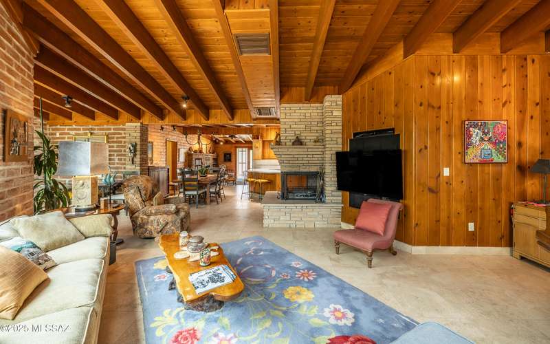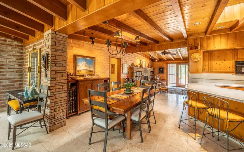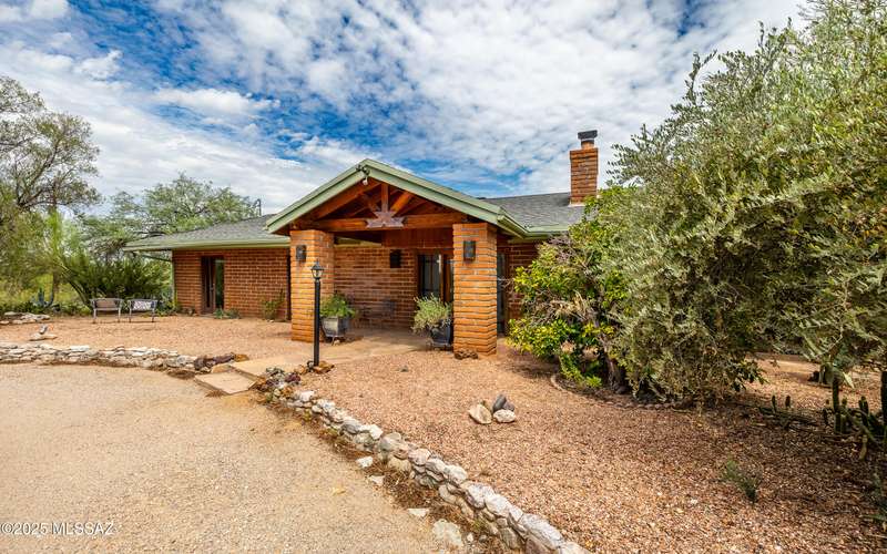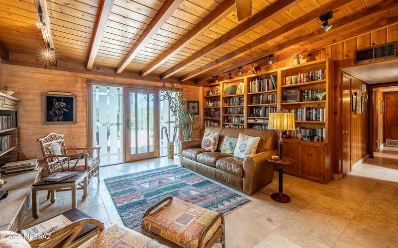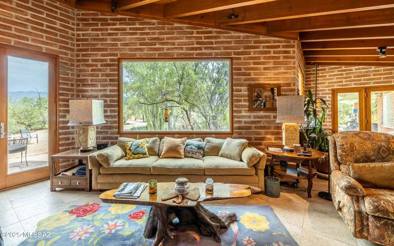 Don't miss out on this rare opportunity to own this timeless Sonoran Desert Ranch retreat, rich with history and custom craftsmanship. This one-of-a-kind home showcases knotty pine tongue-and-groove ceilings that add warmth and character throughout, blending rustic charm with modern design. Expansive windows frame sweeping views of both the Catalina and Rincon Mountains, while stunning wood beams, vaulted ceilings, and travertine tile floors create an elegant, inviting atmosphere. Set on nearly 5 acres of pristine horse property, you'll be surrounded by raw beauty desert-untouched, peaceful, and offering a sense of privacy that's hard to find. Saddle up or lace up your hiking boots Saguaro National Park is right next door.