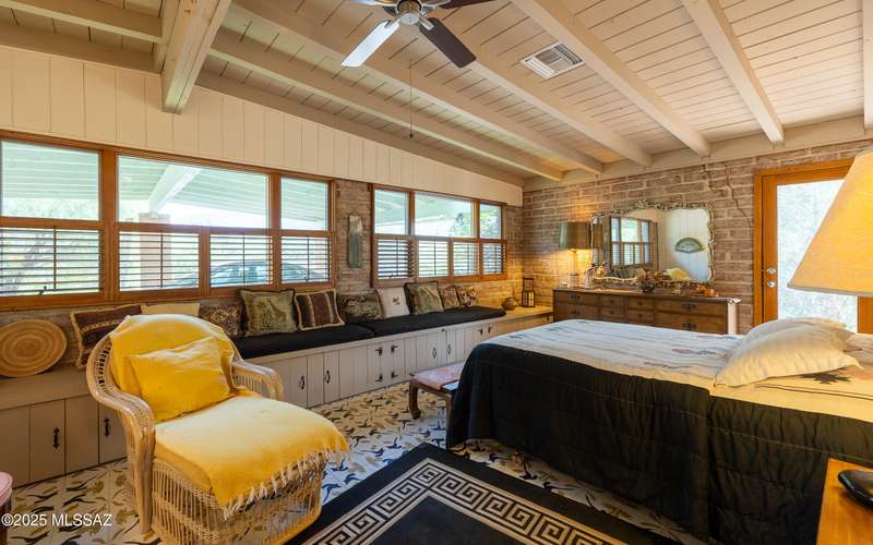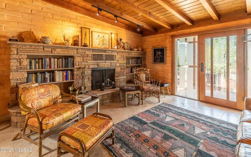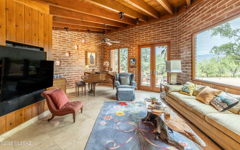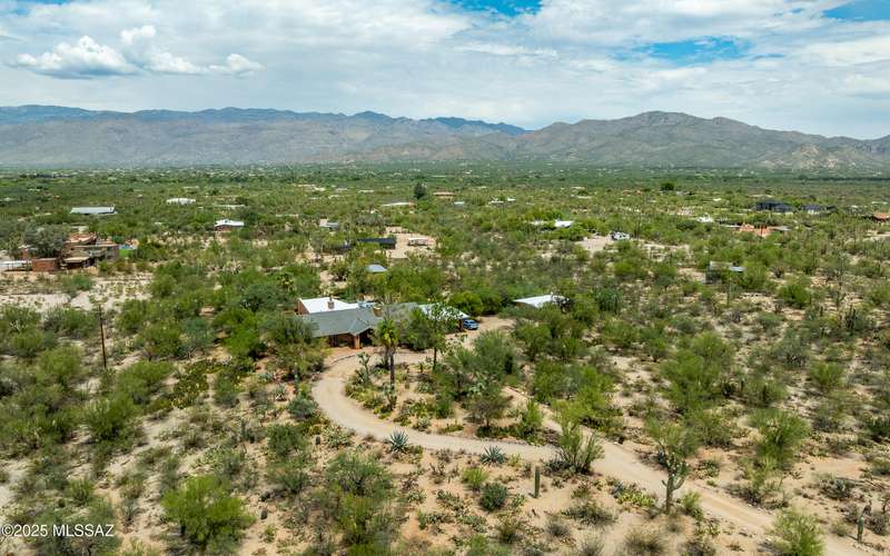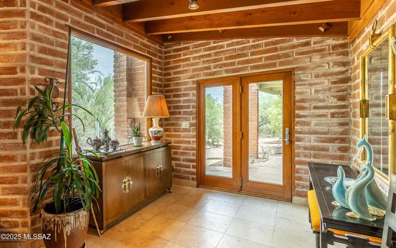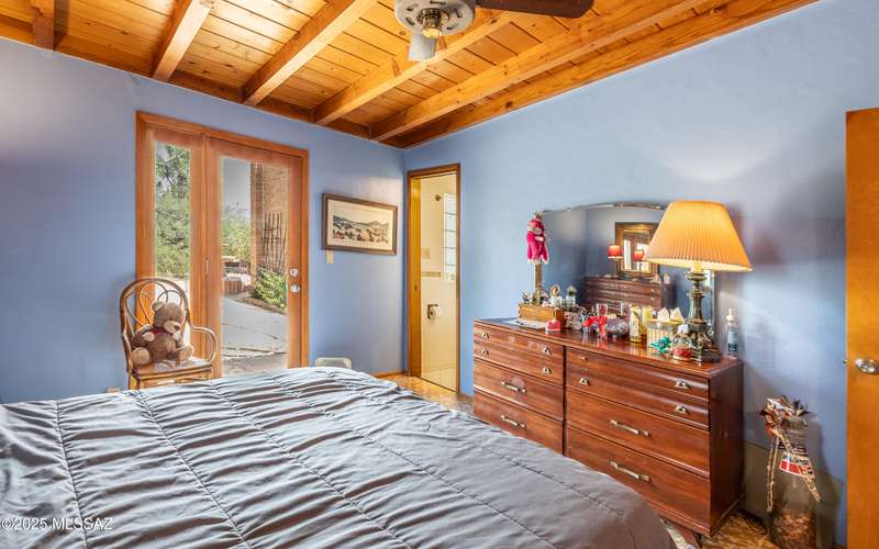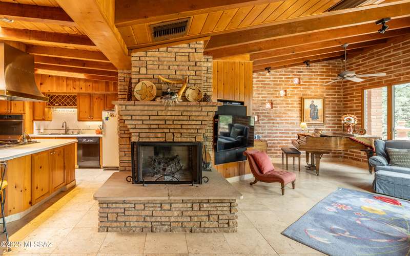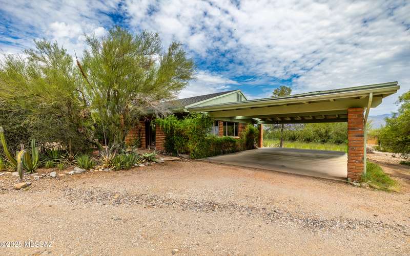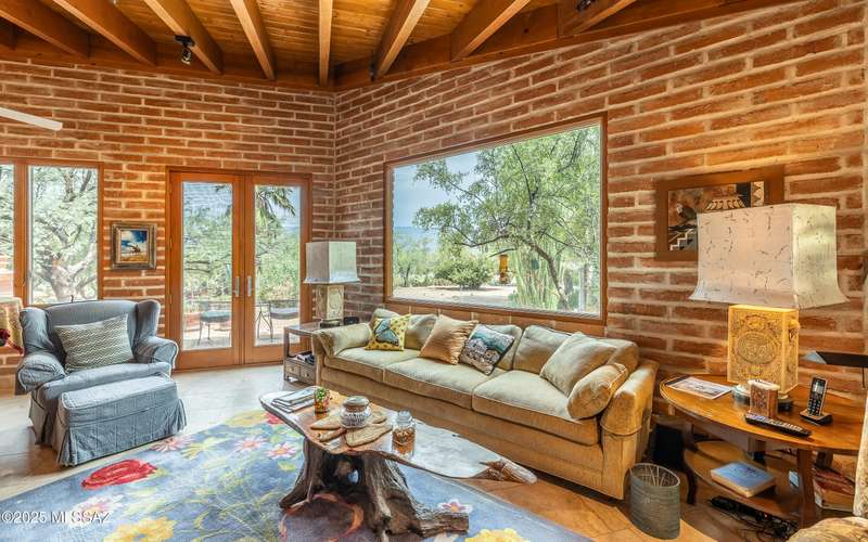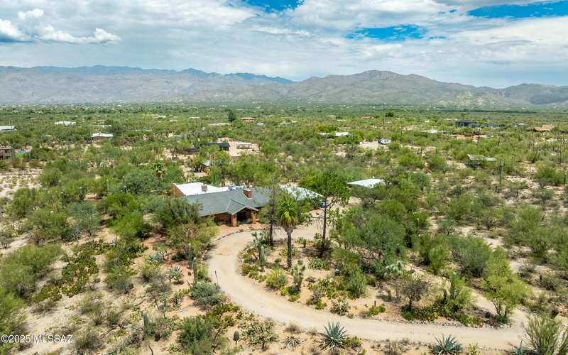 Don't miss out on this rare opportunity to own this timeless Sonoran Desert Ranch retreat, rich with history and custom craftsmanship. This one-of-a-kind home showcases knotty pine tongue-and-groove ceilings that add warmth and character throughout, blending rustic charm with modern design. Expansive windows frame sweeping views of both the Catalina and Rincon Mountains, while stunning wood beams, vaulted ceilings, and travertine tile floors create an elegant, inviting atmosphere. Set on nearly 5 acres of pristine horse property, you'll be surrounded by raw beauty desert-untouched, peaceful, and offering a sense of privacy that's hard to find. Saddle up or lace up your hiking boots Saguaro National Park is right next door.
