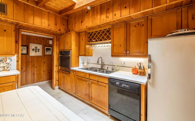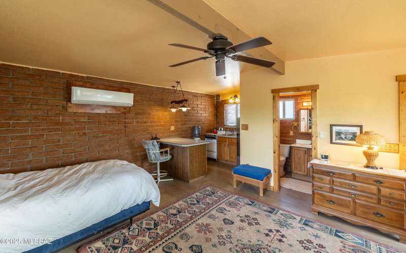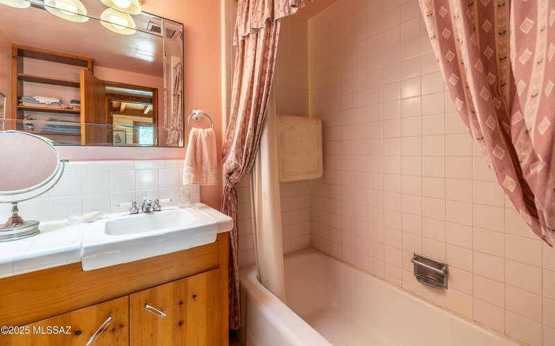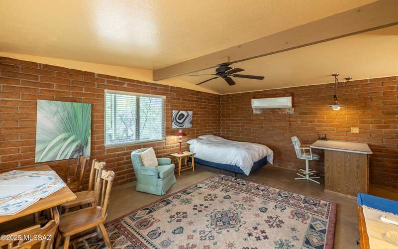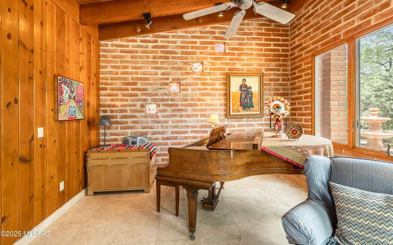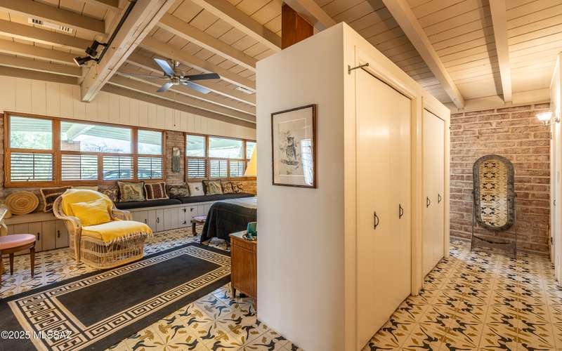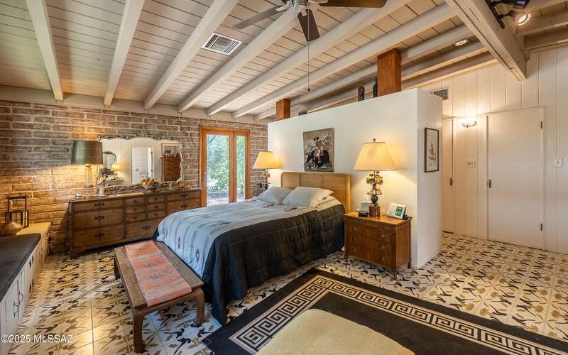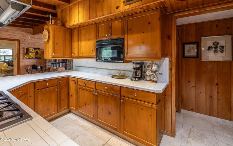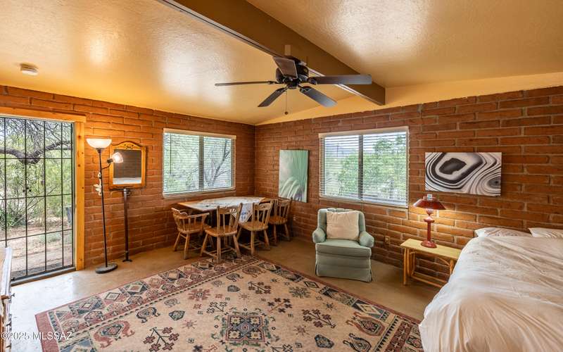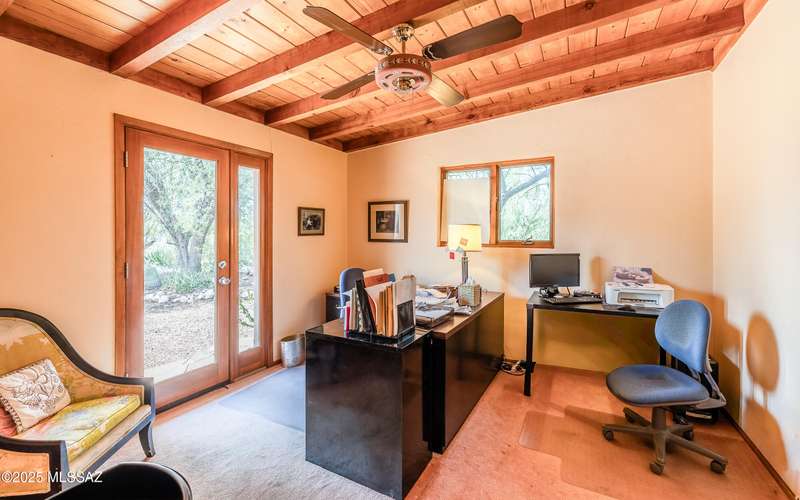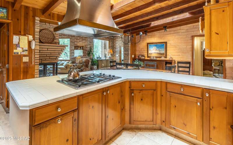 Don't miss out on this rare opportunity to own this timeless Sonoran Desert Ranch retreat, rich with history and custom craftsmanship. This one-of-a-kind home showcases knotty pine tongue-and-groove ceilings that add warmth and character throughout, blending rustic charm with modern design. Expansive windows frame sweeping views of both the Catalina and Rincon Mountains, while stunning wood beams, vaulted ceilings, and travertine tile floors create an elegant, inviting atmosphere. Set on nearly 5 acres of pristine horse property, you'll be surrounded by raw beauty desert-untouched, peaceful, and offering a sense of privacy that's hard to find. Saddle up or lace up your hiking boots Saguaro National Park is right next door.