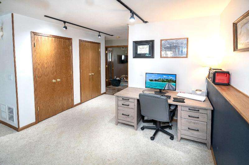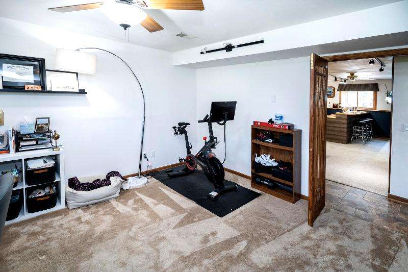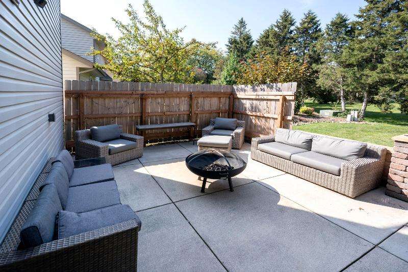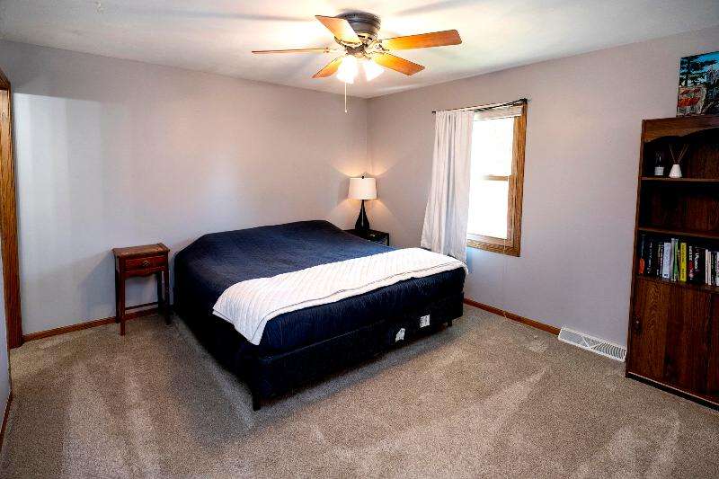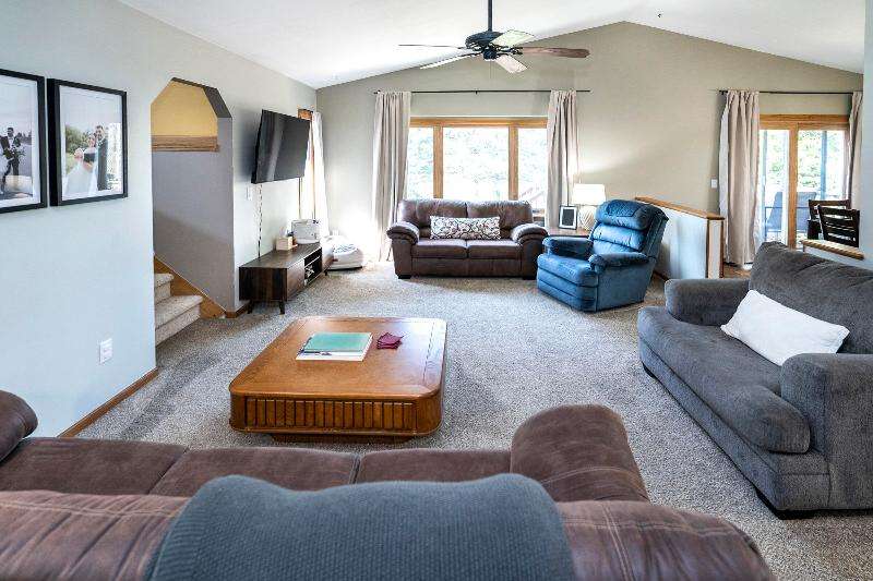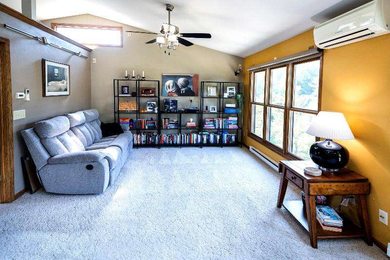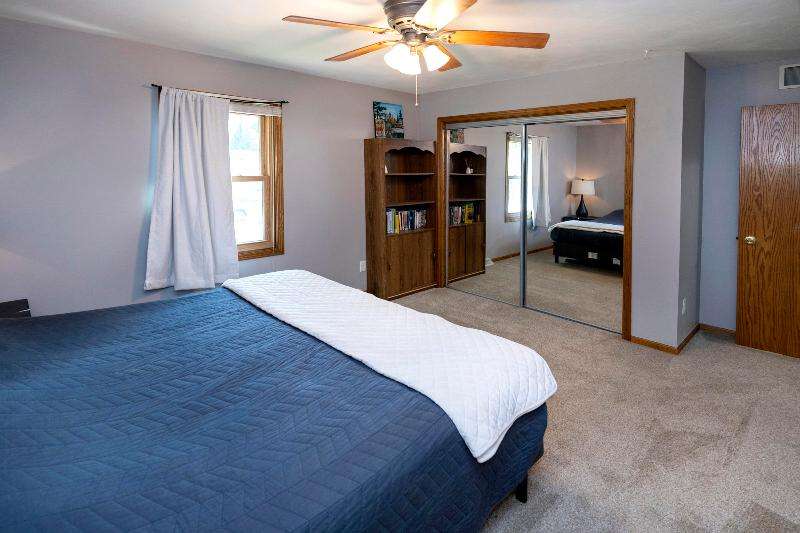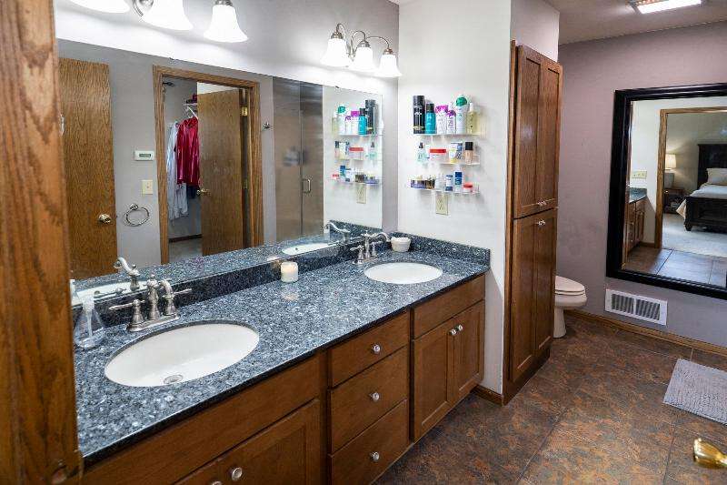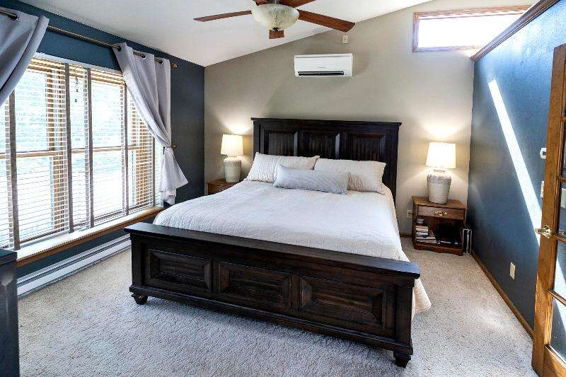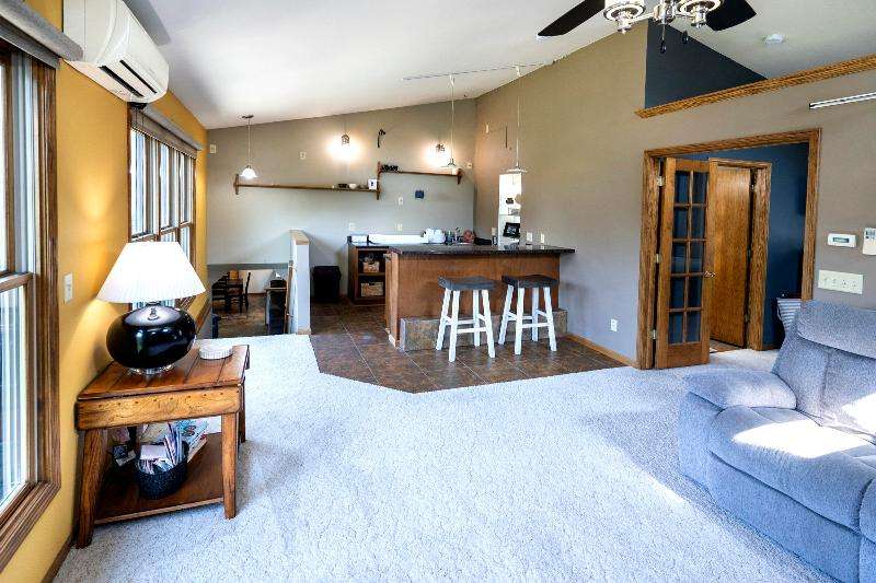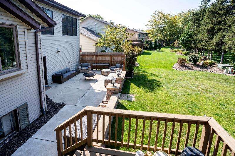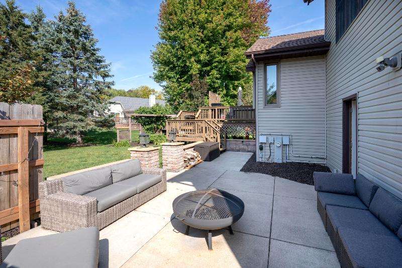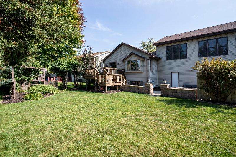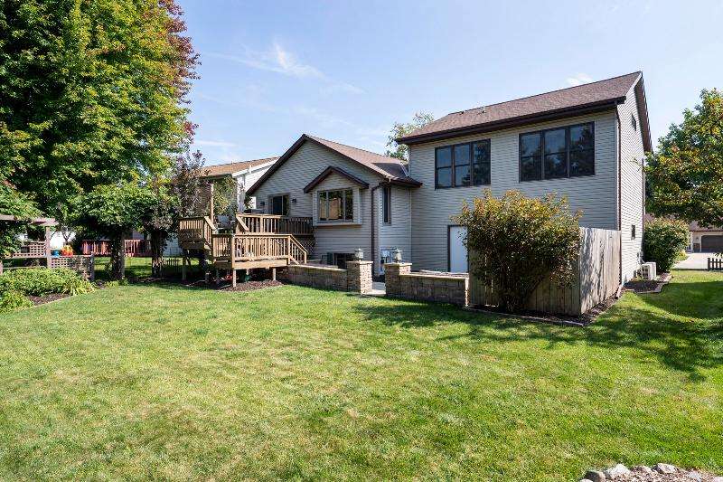 Only a job relocation makes this spacious & versatile floorplan available. The open floorplan on main level includes a generously sized LR, kitchen w/pantry, great counter space, breakfast bar, stools included, dining area w/patio door to deck w/nice privacy for dining al fresco. Also a full bath, original primary w/en-suite bath & 3rd bedroom. The entire upper floor is currently used as the primary suite. it includes BR, WIC, ensuite bath and ''den'' area w/wet bar, perfect space for multi-generational living. The LL has FR, GFP, custom bar, 4th BR, 4th full bath, laundry room, & storage. The heated garage also has a nice storage. Enjoy time on the private patio. Little Spring Lake is an added bonus w/walking path around it & ability to fish, swim, use non motorized boats, x-country ski