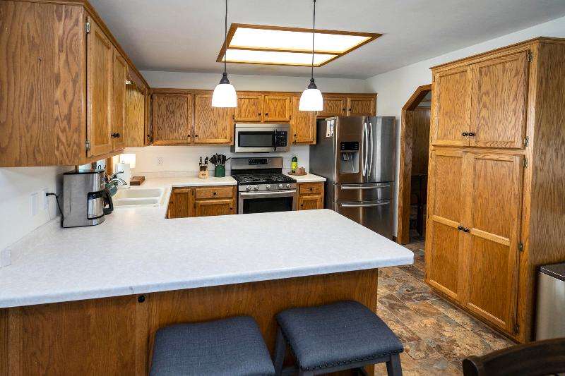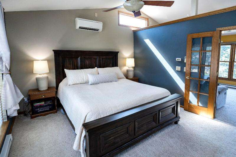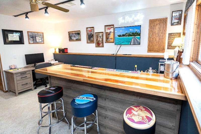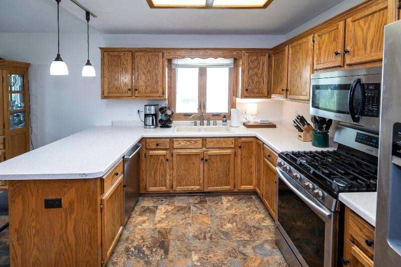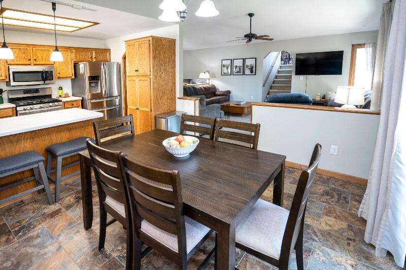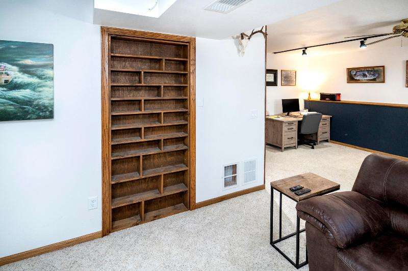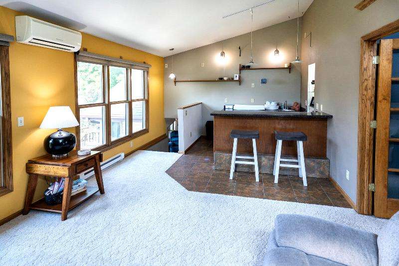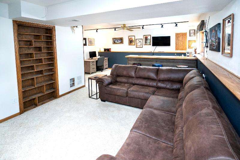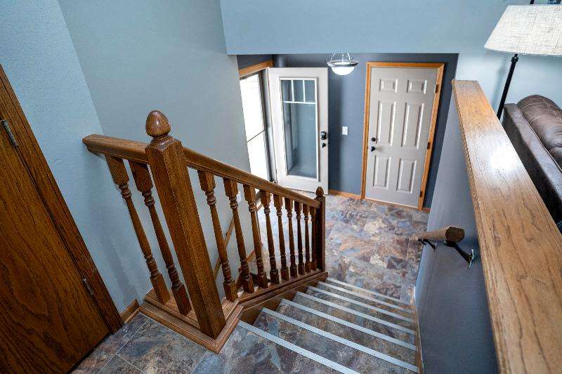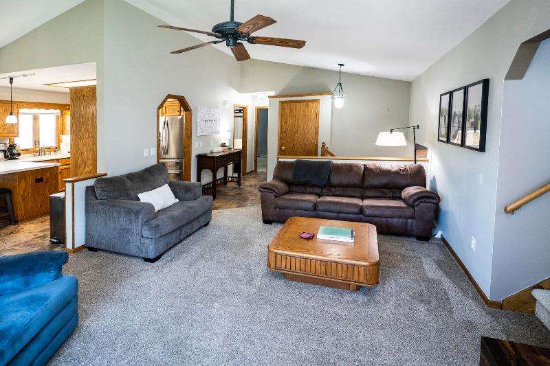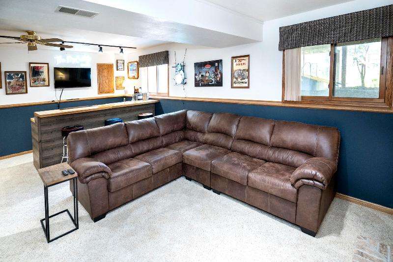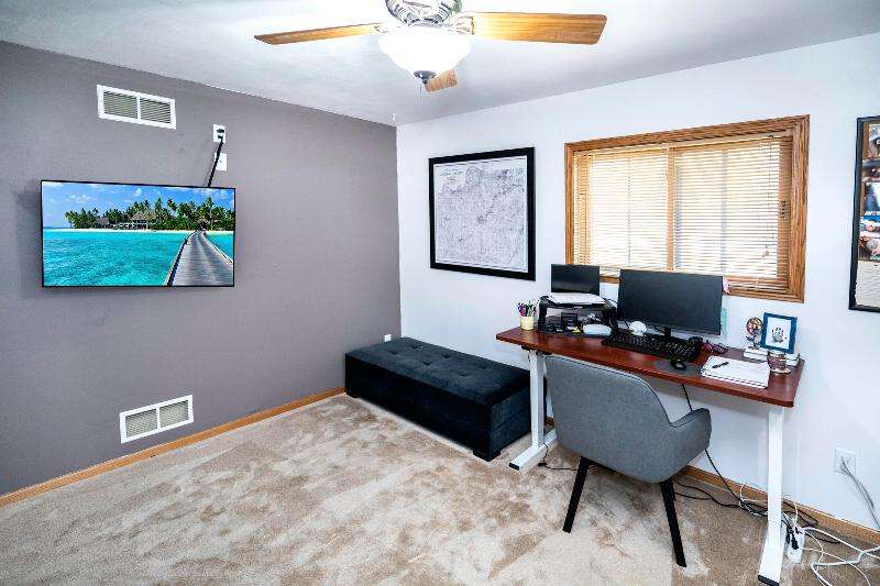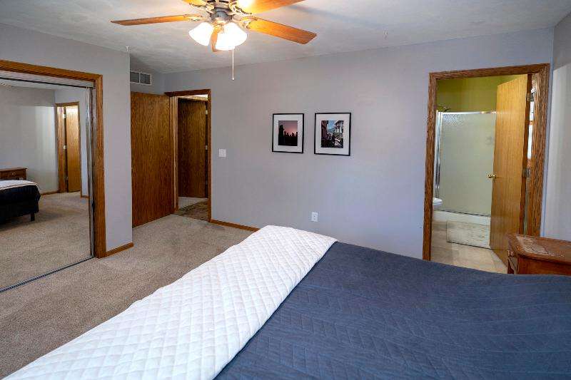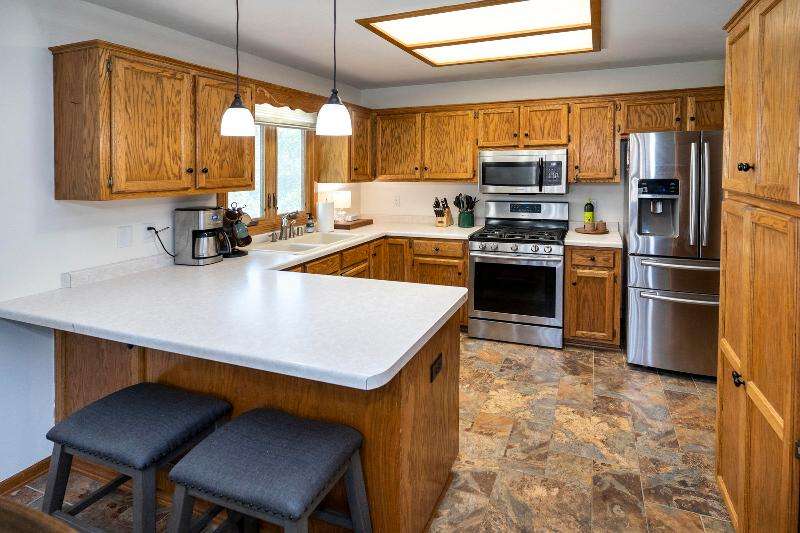 Only a job relocation makes this spacious & versatile floorplan available. The open floorplan on main level includes a generously sized LR, kitchen w/pantry, great counter space, breakfast bar, stools included, dining area w/patio door to deck w/nice privacy for dining al fresco. Also a full bath, original primary w/en-suite bath & 3rd bedroom. The entire upper floor is currently used as the primary suite. it includes BR, WIC, ensuite bath and ''den'' area w/wet bar, perfect space for multi-generational living. The LL has FR, GFP, custom bar, 4th BR, 4th full bath, laundry room, & storage. The heated garage also has a nice storage. Enjoy time on the private patio. Little Spring Lake is an added bonus w/walking path around it & ability to fish, swim, use non motorized boats, x-country ski