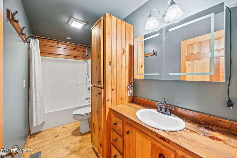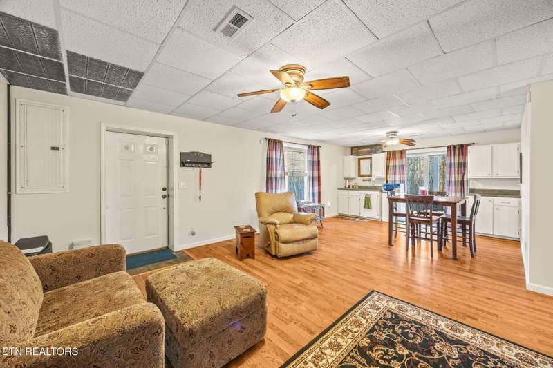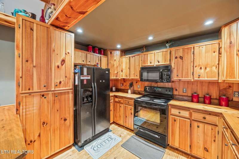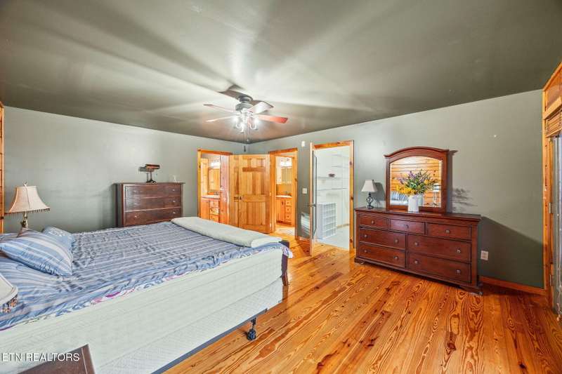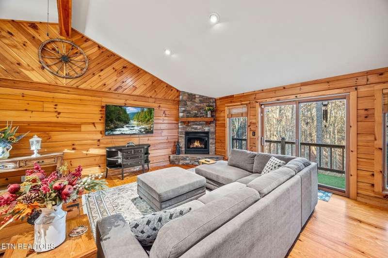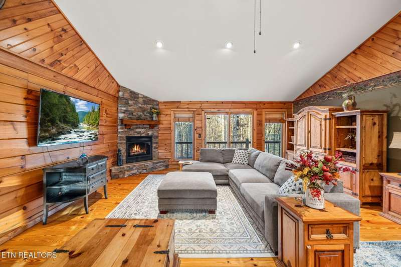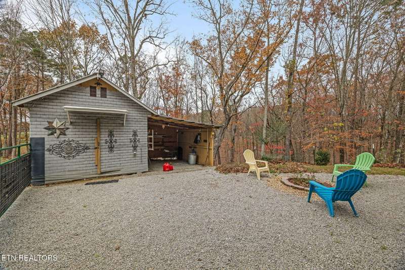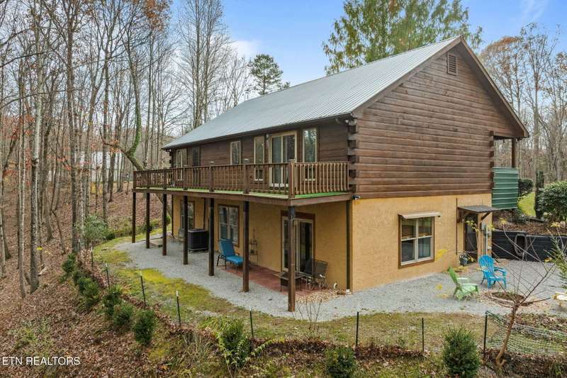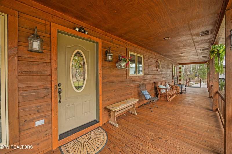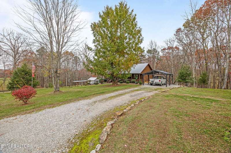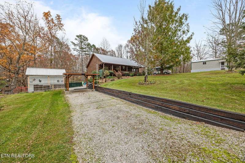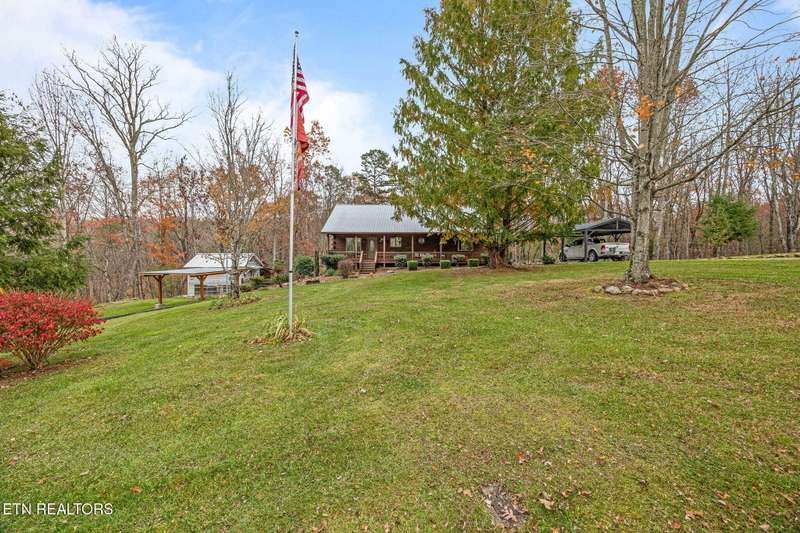 Escape to the tranquility of this beautifully maintained two-story log cabin nestled at the end of a quiet dead-end road. Surrounded by 300 acres of rolling pastureland, this home offers unparalleled privacy, charm, and scenic beauty. With only five homes on the street and located on unrestricted land, this property offers a rare combination of seclusion and convenience, just minutes from Jamestown, local schools, and the amenities of the Upper Plateau region. The main level welcomes you with a spacious open floor plan, soaring cathedral ceilings, and a built-in stone fireplace with a remote control, allowing you to set a temperature for the fireplace to automatically turn on/off, perfect for gatherings or quiet evenings. The well-appointed kitchen features plenty of cabinetry, a garbage disposal and a dishwasher, making it ideal for everyday living or entertaining. The main level also includes a sizable primary bedroom with ample closet space, extra insulation underneath the bathroom floor for extra comfort, an additional room with a closet that could function as an office or second bedroom, and large casement windows that flood the space with natural light while showcasing the stunning views of the surrounding landscape. The downstairs features a living space, complete with two additional bedrooms, its own laundry area, a mini kitchen with a stand-up freezer and a brand-new front-loading washer and dryer, a living room, eating area, sliding patio door, and separate driveway and entry door. This lower level is perfect for hosting guests, extended family, or even creating a rental opportunity. Step outside to discover the serene beauty of the expansive back deck, which offers breathtaking views of wildlife, a charming bluff with natural rock formations, and a peaceful creek running through the property. The yard is beautifully landscaped, blending seamlessly into the surrounding woods, and includes a fire pit for evenings under the stars. The property also features two carports with concrete-anchored pads, a storage shed, and a detached garage with outstanding amenities. The 20'x30' metal building sits on a solid concrete base and boasts insulated walls and ceilings, LED lighting, a natural gas heater with its own independent meter, and a hardwired smoke detector. The garage is equipped with an independent fuse box and electrical meter, as well as 4-gang outlets throughout. It also features two slide-by windows and two doors: one 10'x8' garage door with an opener and remote and a second manually operated roll-up metal door, approximately 6'x6', with a brush seal. Additional amenities include: Two septic systems for convenience and efficiency, two laundry areas (one on each level) for practicality, a storm safe room for added security, fiber-optic internet for modern connectivity, a 2019 HVAC system, and logs sealed just three years ago for peace of mind. Electric central heat and air, along with natural gas fireplaces on both levels, provide year-round comfort. Whether you're sipping coffee on the full-length covered front porch, exploring the scenic bluff, or gathering with loved ones around the fire pit, this home offers a perfect balance of modern convenience and natural beauty. This is more than a house—it's a retreat where you can truly escape and embrace a lifestyle of relaxation and adventure. Don't miss the opportunity to own this extraordinary property. Schedule your private showing today and make this stunning cabin your forever home! *The seller captured a few photos of the property in bloom this spring to showcase its seasonal beauty.*