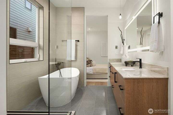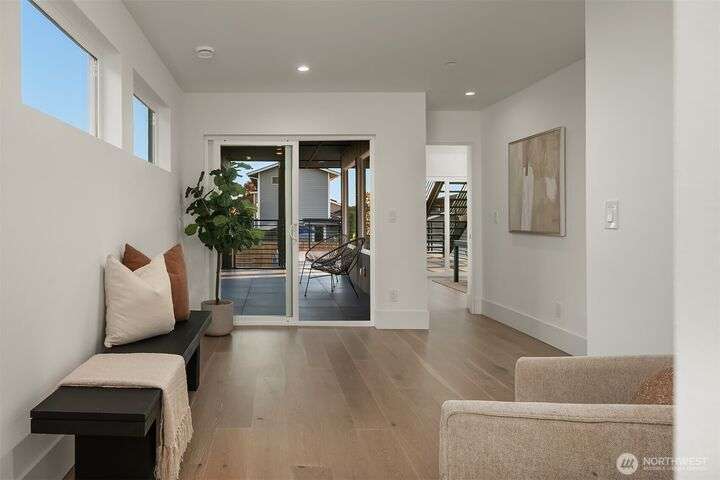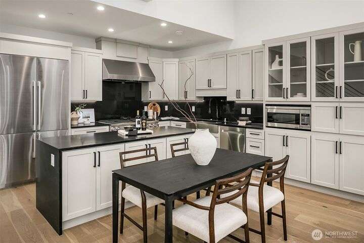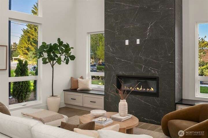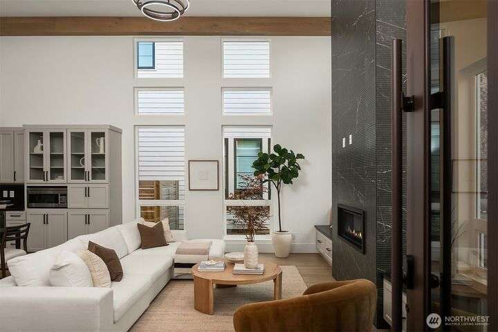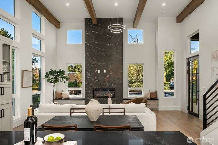 Located in coveted West of Market, this newly completed home blends luxury and comfort just steps to downtown, parks, and the waterfront. Upon entering, you are greeted by a stunning great room with 16-ft vaulted ceilings and a floor-to-ceiling fireplace. The spacious kitchen features a double waterfall quartz island, full slab backsplash, Dacor professional-grade appliances, and walk-in pantry. Main floor primary suite with lavish 5-piece spa bath featuring quartzite countertops, heated floors, and large soaking tub. Upper level features 2 additional bedrooms, and access to 600sf of entertainment deck including a 400sf rooftop with panoramic views of lake and mountains. No shared walls, fully fenced yard, A/C, 2-car garage w EV charger.