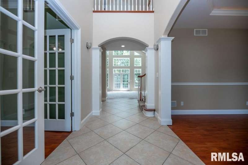 Nestled on nearly 7 private acres, this beautiful 3-bedroom home (with a potential 4th bedroom or office) offers the perfect blend of seclusion and convenience—just minutes from the interstate. A long, tree-lined driveway welcomes you into a peaceful, picturesque setting. Inside, the home opens to a formal dining room and a versatile office space. The stunning two-story great room features a striking stone fireplace flanked by built-in shelving and a wet bar—perfect for entertaining. A wall of floor-to-ceiling windows and French doors frames serene views of the expansive deck and wooded backyard. The open-concept kitchen offers a central island and seamless flow for gatherings. Built-in speakers throughout the home, garage, and screened porch elevate your entertaining experience. Upstairs, the spacious primary suite includes a walk-in closet and full en-suite bath, while two additional bedrooms share a large full bathroom. The home has a walk-out basement. Enjoy the best of both worlds—peaceful, private acreage with quick access to modern conveniences. Tenant is responsible for propane, electric and garbage. Property is on a well and septic. Must complete a rental application and a background check. Lawn and snow maintenance are included with rent.