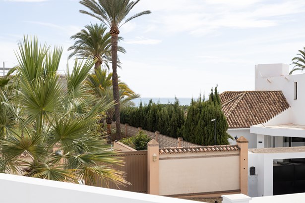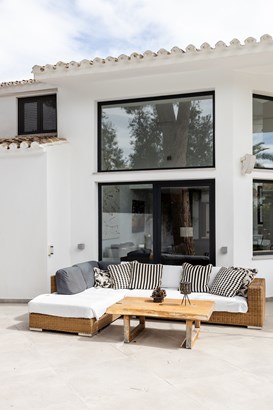This exquisitely refurbished villa enjoys an enviable location just 180 meters from the pristine sandy shores of Las Chapas Playa. Offering five sumptuous bedrooms and four impeccably appointed bathrooms, it is nestled on an expansive, south-west-facing plot, with every convenience and leisure facility merely a short walk away.The outdoor living experience is unparalleled, featuring a generously proportioned entertainment area complete with a state-of-the-art kitchen and bar. Equipped with both gas and charcoal barbecues, a flat-screen TV, and a cozy fire pit, this sophisticated space is designed for all seasons. Ingeniously, the area can be fully enclosed to ensure year-round comfort.Meticulously refurbished with uncompromising attention to detail, the villa exudes timeless elegance and modern functionality. The main floor unveils a luminous, double-height living room with soaring floor-to-ceiling windows, seamlessly connecting to a partially covered terrace. Adjacent lies a fully