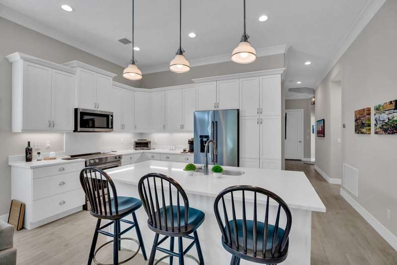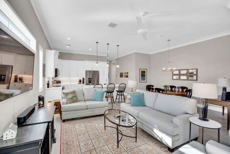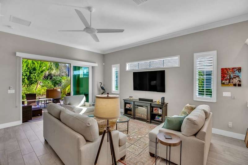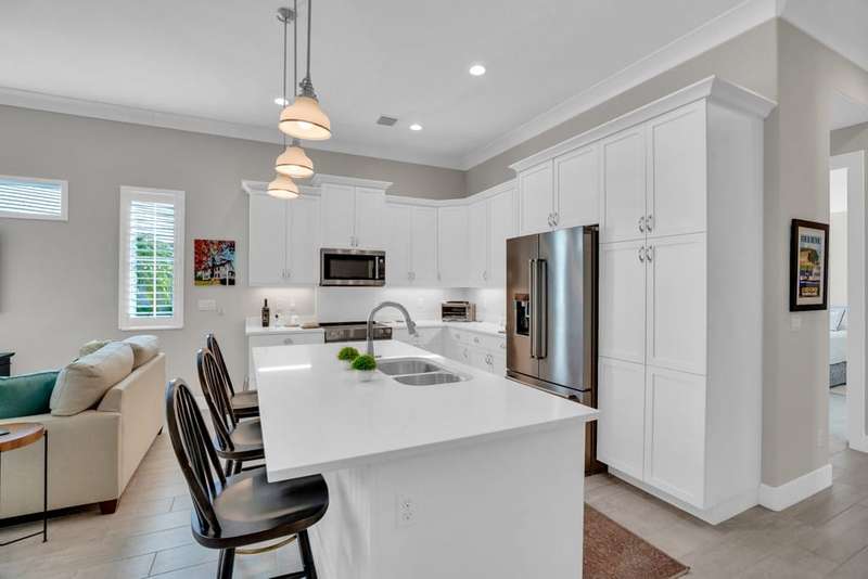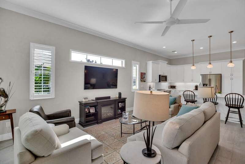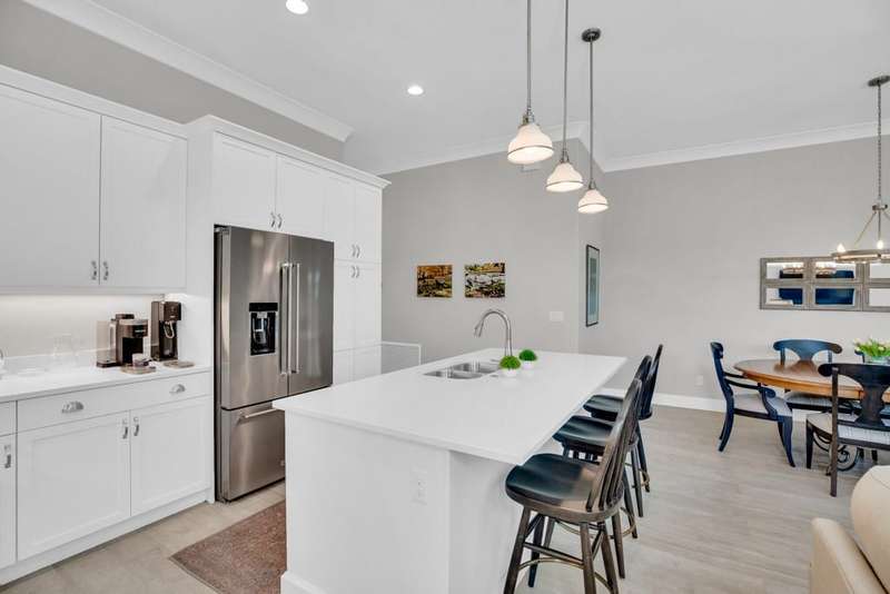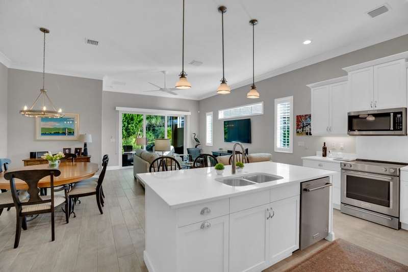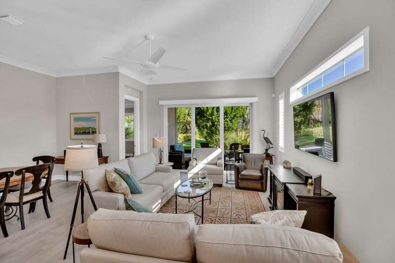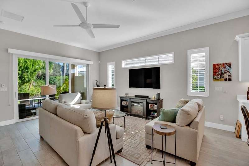 Rarely available, Bermuda inspired Golf Cottage resale built by GHO homes. Top of the line finishes, lovely neutral decor, third bedroom was den, now has closet. Brick paver drive porch, patios, whole house generator and so much more Amenities with OH membership. Sizes are approx/subj to error.