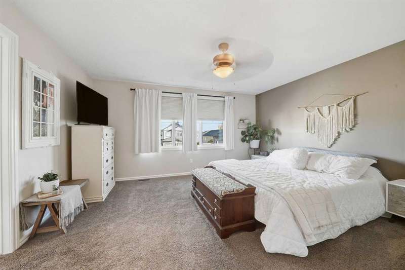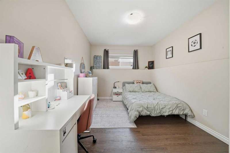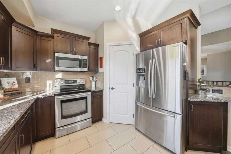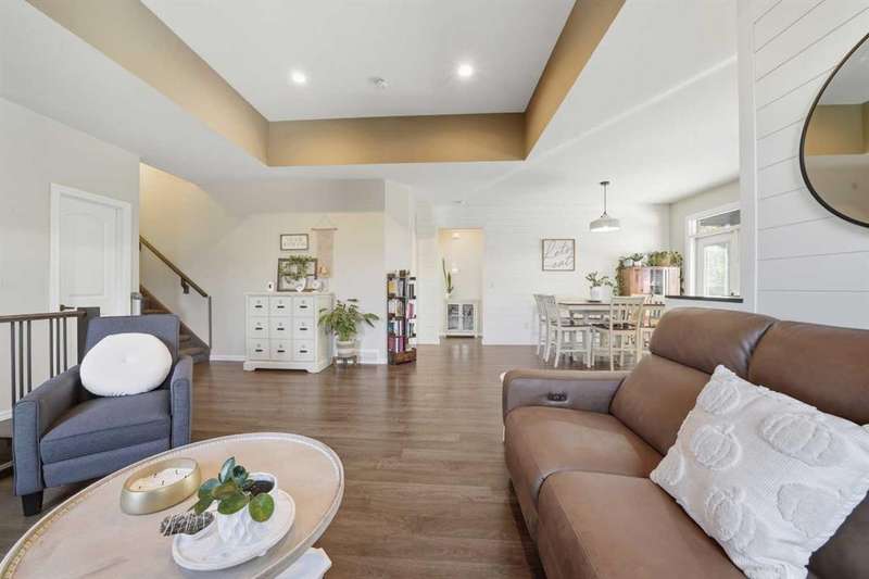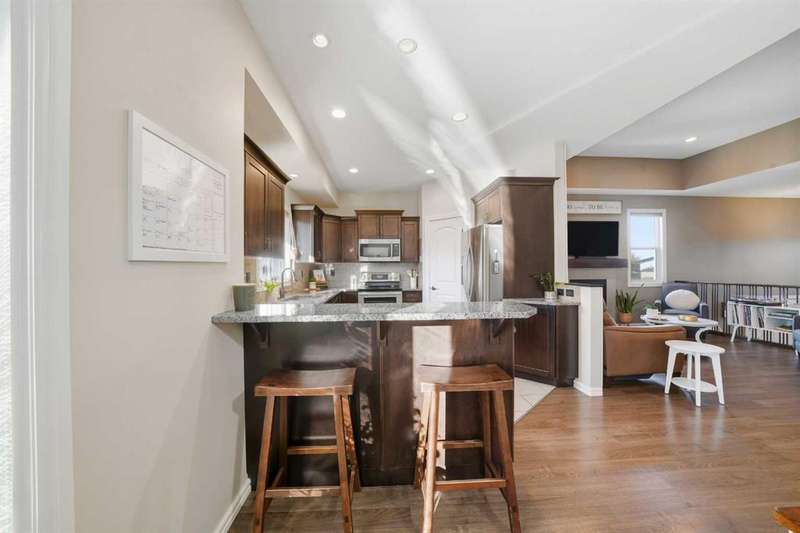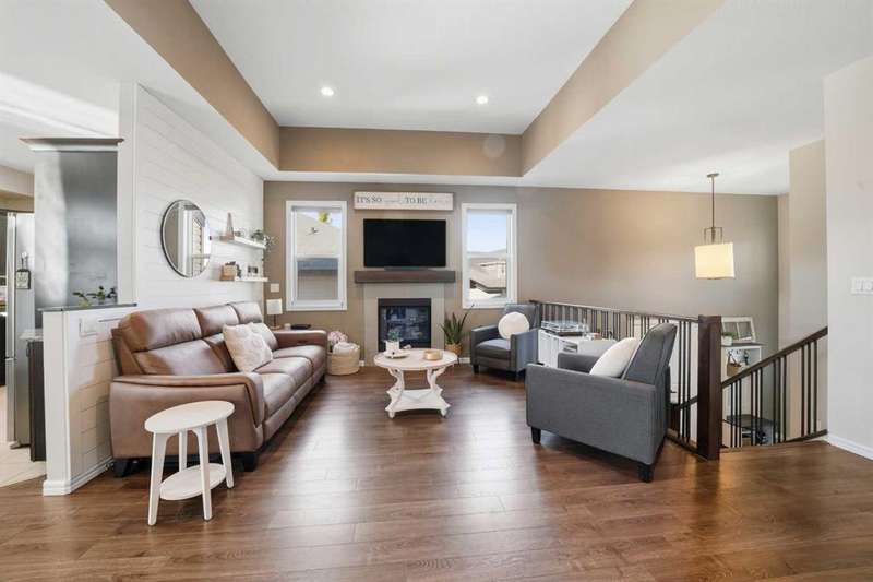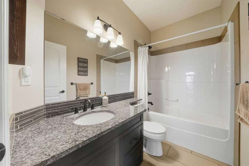 Pride of ownership is evident the moment you step inside this stunning custom-built modified bi-level. The spacious, bright foyer with tile flooring immediately sets the tone for the modern style and thoughtful design carried throughout this home. The open-concept main floor features a gorgeous kitchen with stained maple cabinetry, granite countertops, and stainless steel appliances. The living room impresses with its soaring 14-foot ceilings, creating a warm, inviting atmosphere centered around a cozy fireplace — perfect for relaxing or entertaining. This level includes two bedrooms, convenient for the kids . The primary suite is a true retreat, privately located above the garage and offering a luxurious ensuite with a soaker tub, separate shower, and a massive walk-in closet. The fully finished basement adds even more living space with an additional bedrooms, a spacious family room, a large bathroom, and the comfort of in-floor heating. Quality craftsmanship and attention to detail are showcased throughout, including matching granite in all bathrooms, central A/C, and custom blinds. Outside, you’ll find a beautifully landscaped and fully fenced yard with a storage shed, plus a heated triple garage and an oversized front parking pad — ideal for extra vehicles or toys. This home truly combines luxury, comfort, and functionality in one impressive package.