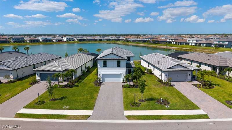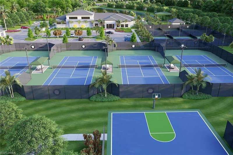 New construction Now Available for Immediate Occupancy! This "Rainier" home offers Impact Resistant Windows throughout and has 3 Bedrooms plus a Den, 3 Baths, and a 2-Car Garage, an open kitchen with stainless steel GE Appliances including Gas Cooktop and Quartz Countertops. The master bedroom offers a coffered ceiling, spacious closets and a master bath with separate shower and tub. RiverCreek is Estero's hottest new gated community and features numerous amenities for everyone including a 12,000 square foot Clubhouse with Resort-style pool, event room, fitness center, indoor sports court, tennis, pickleball, basketball and more! Some of the property photos have been virtually rendered.
