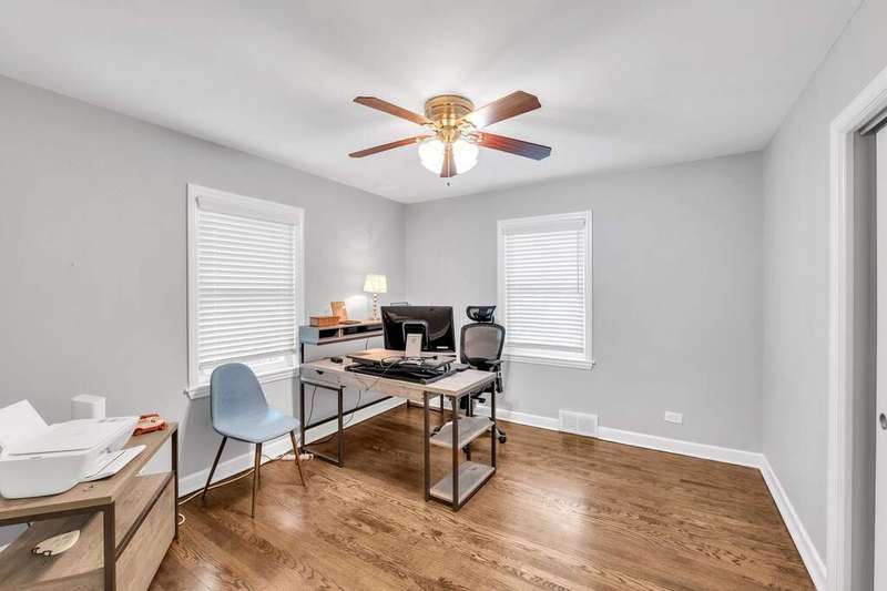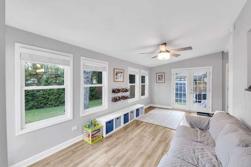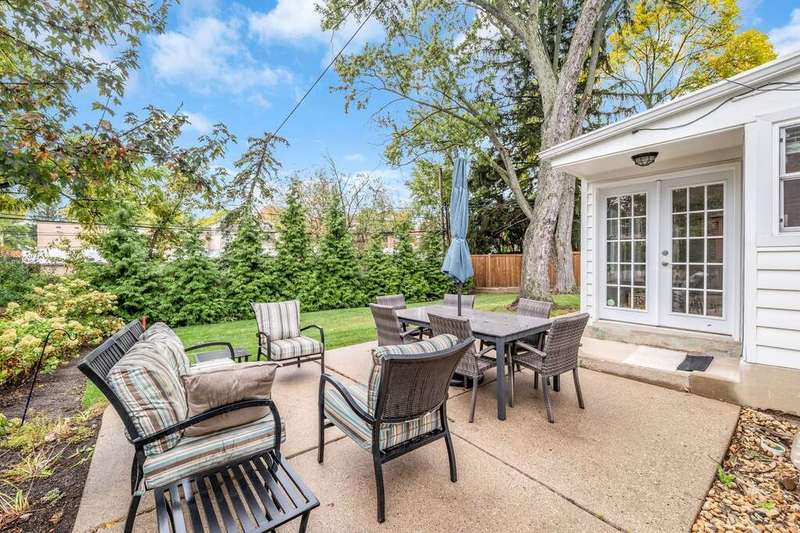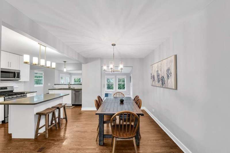 Modern Elegance and Unbeatable Walkability in the Heart of Glenview. Perfectly situated in the sought-after Bonnie Glen neighborhood, this beautifully renovated home blends timeless warmth with modern sophistication. Every space has been thoughtfully updated, from the stunning kitchen with quartz countertops, custom cabinetry, large island, and stainless steel appliances, to the open-concept living and family rooms that flow effortlessly together-ideal for entertaining or everyday living. A cozy gas fireplace and picture window add character and charm. The flexible floor plan offers endless possibilities, including the option for a convenient first-floor primary suite or a dedicated home office. Upstairs, additional bedrooms and bathroom provide comfort and privacy for family or guests. The recently renovated and fully finished basement extends the living space even further, featuring a stylish wet bar, generous recreation area, and abundant storage. Outside, enjoy a fully fenced backyard with a spacious patio, perfect for outdoor gatherings. Additional highlights include Smart Home Ecobee thermostats, a new roof (2020), and complete exterior upgrades with fresh paint, mature privacy trees, and professional landscaping. Nestled on a quiet cul-de-sac just steps from the Glenview Metra, Lyon School, parks, Starbucks, grocery stores, and millions of dollars of new restaurant developments, this home offers the perfect balance of modern living and neighborhood charm.