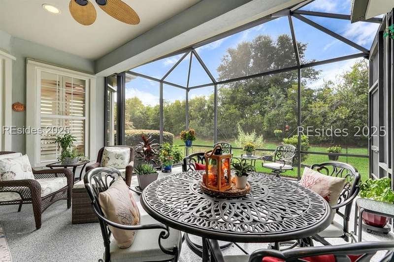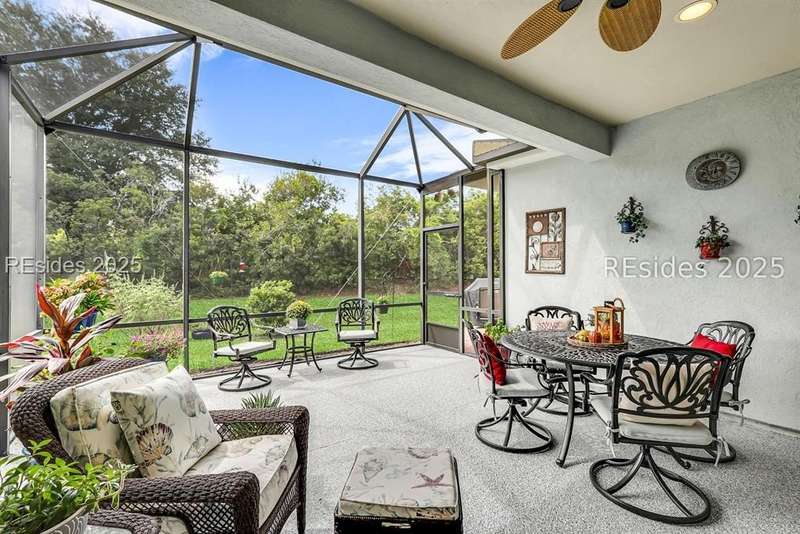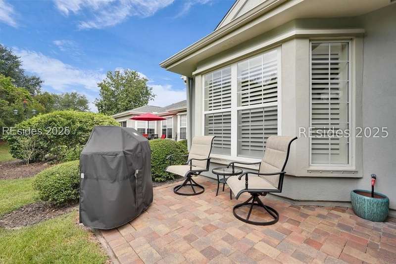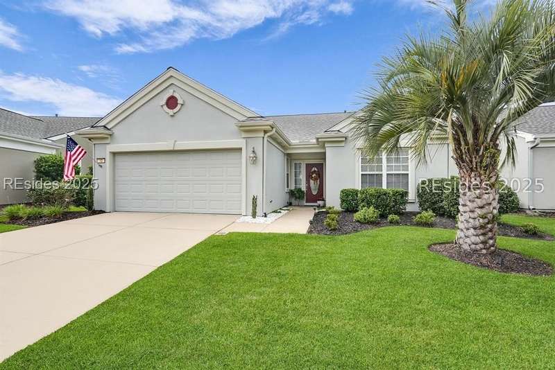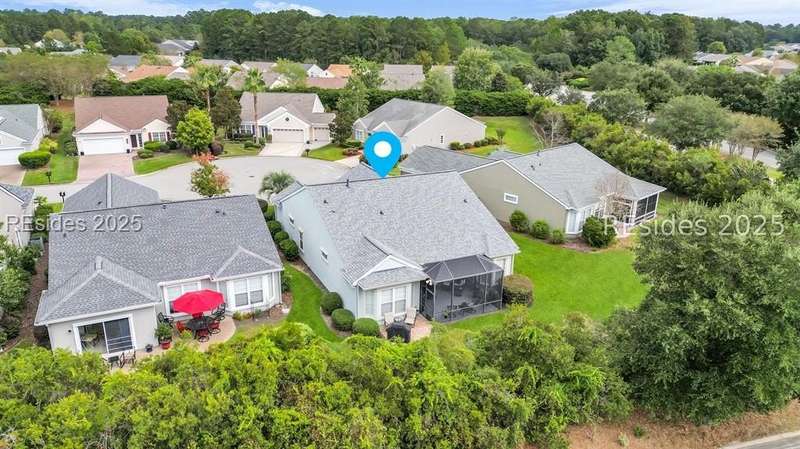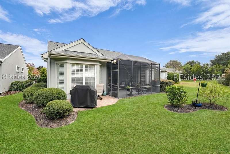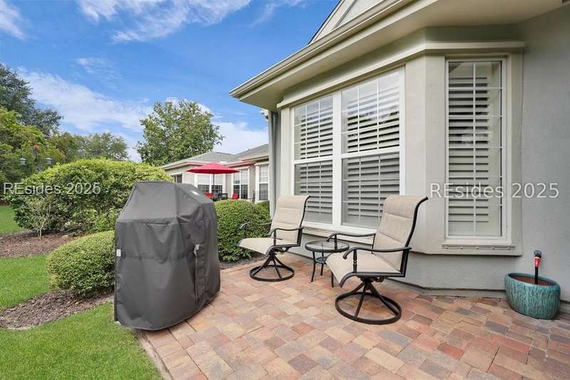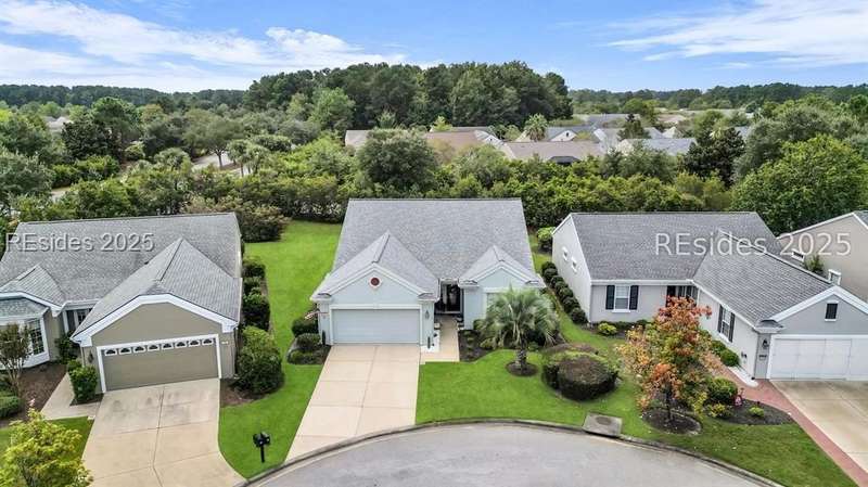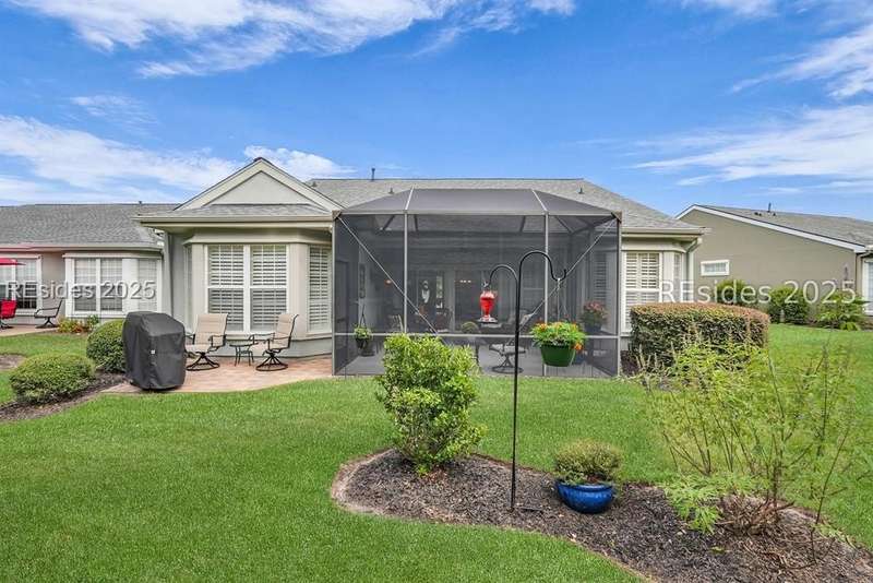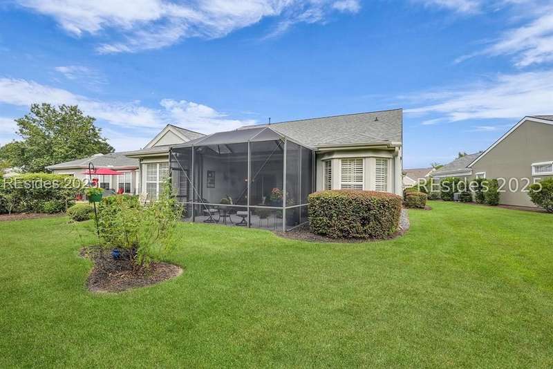 Tucked away at the end of a quiet cul-de-sac in Sun City South, this popular Ibis model offers 3 bedrooms plus an office/flex space, 2 baths, and an extended 2-car garage. Thoughtfully enhanced with over $77,000 in upgrades, the home is move-in ready and designed for both comfort and convenience. Inside, you'll find engineered hardwood flooring in the main living areas, new carpet (2024) in the primary suite, and plantation shutters throughout. The kitchen features a gas range, new refrigerator, granite countertops, custom backsplash, cabinet pull-outs, and a sunny bay window. A French door office with LVP flooring provides a private and versatile space for work or hobbies. The primary suite includes a bay window retreat and an updated bath with quartz dual vanity, soaking tub, and separate shower. Two guest bedrooms, each with ceiling fans and blinds, share an updated bath with quartz, bronze fixtures, and a walk-in shower. Outdoor living shines with two sliders leading to a screened lanai with epoxy flooring, TV hookup, and a paver patio overlooking a private berm. The extended garage with attic storage adds everyday practicality. Residents of Sun City Hilton Head enjoy world-class amenities including 3 golf courses, multiple clubhouses, fitness centers, pickleball, tennis, indoor and outdoor pools, dog parks, walking trails, and over 100 social clubs.