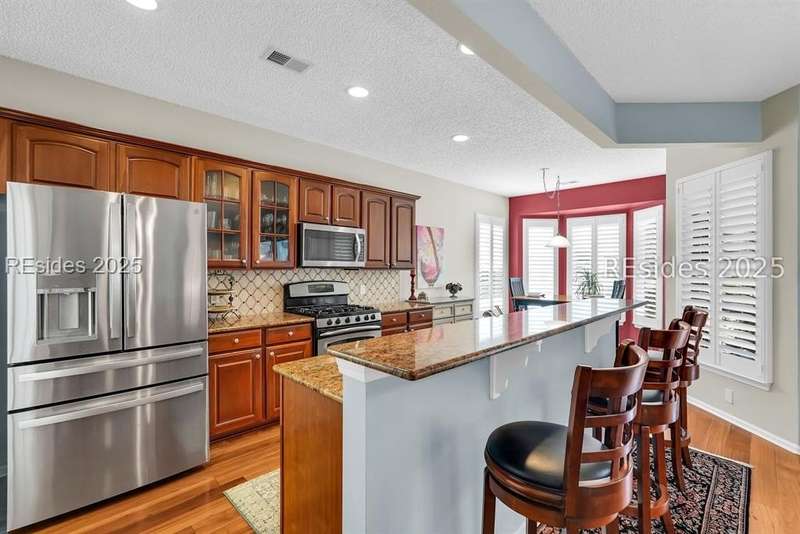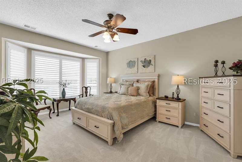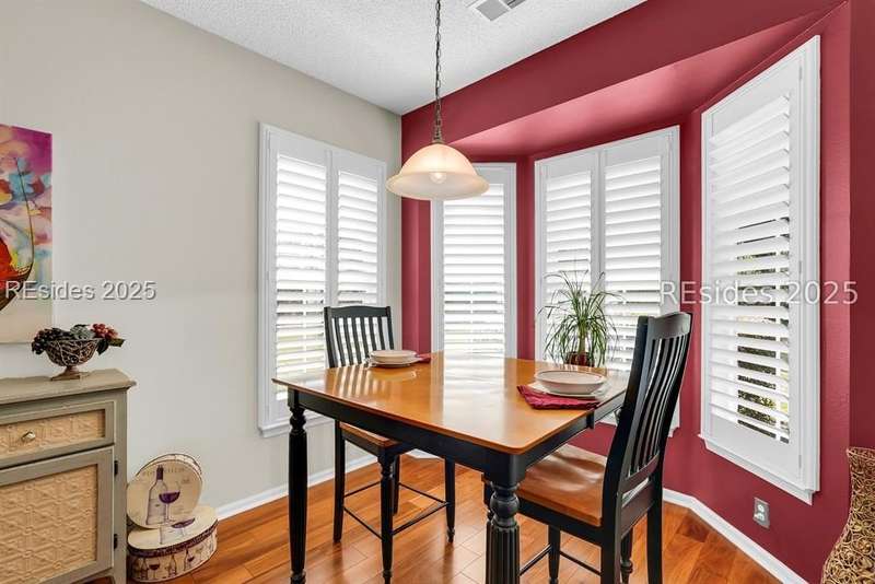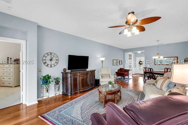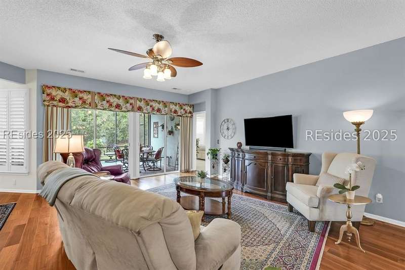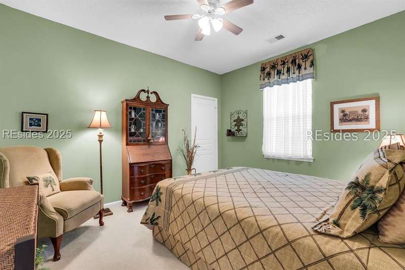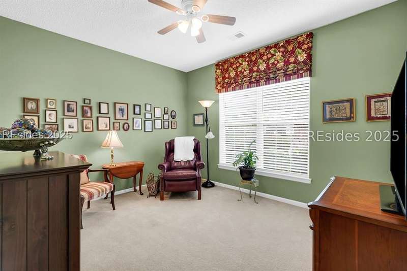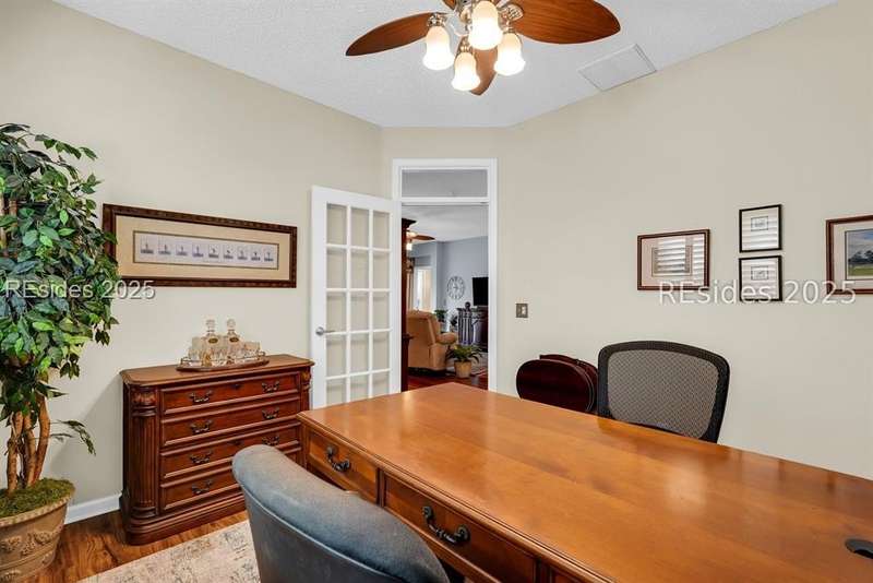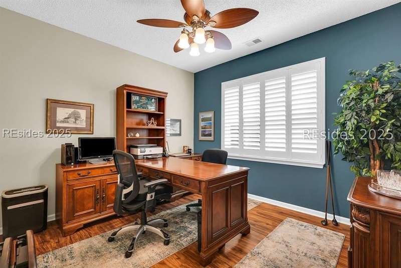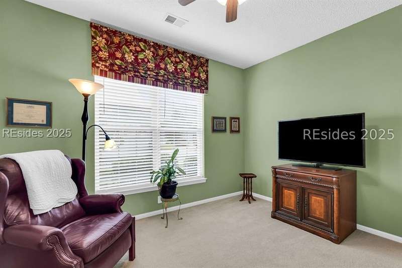 Tucked away at the end of a quiet cul-de-sac in Sun City South, this popular Ibis model offers 3 bedrooms plus an office/flex space, 2 baths, and an extended 2-car garage. Thoughtfully enhanced with over $77,000 in upgrades, the home is move-in ready and designed for both comfort and convenience. Inside, you'll find engineered hardwood flooring in the main living areas, new carpet (2024) in the primary suite, and plantation shutters throughout. The kitchen features a gas range, new refrigerator, granite countertops, custom backsplash, cabinet pull-outs, and a sunny bay window. A French door office with LVP flooring provides a private and versatile space for work or hobbies. The primary suite includes a bay window retreat and an updated bath with quartz dual vanity, soaking tub, and separate shower. Two guest bedrooms, each with ceiling fans and blinds, share an updated bath with quartz, bronze fixtures, and a walk-in shower. Outdoor living shines with two sliders leading to a screened lanai with epoxy flooring, TV hookup, and a paver patio overlooking a private berm. The extended garage with attic storage adds everyday practicality. Residents of Sun City Hilton Head enjoy world-class amenities including 3 golf courses, multiple clubhouses, fitness centers, pickleball, tennis, indoor and outdoor pools, dog parks, walking trails, and over 100 social clubs.