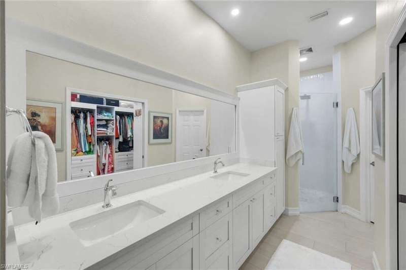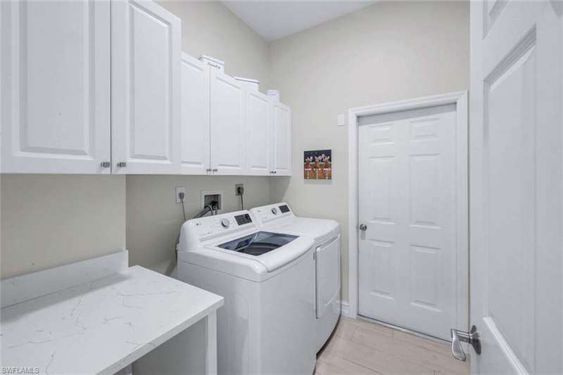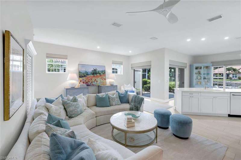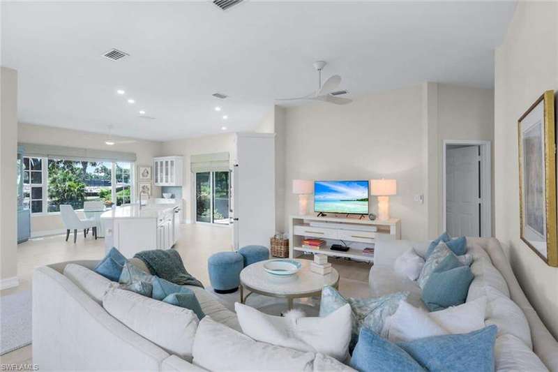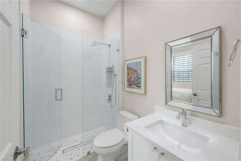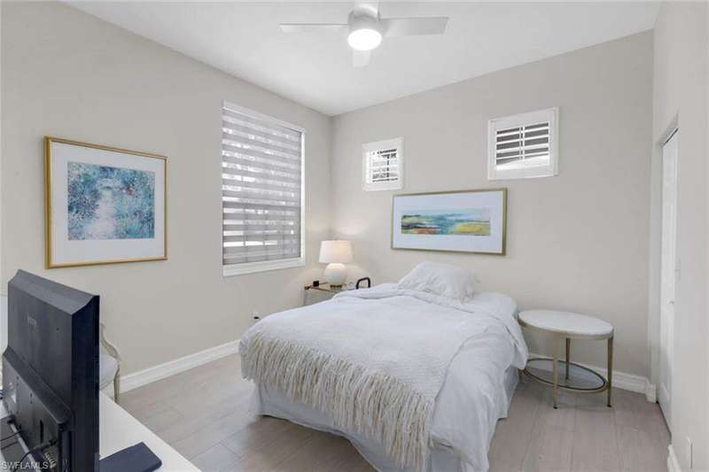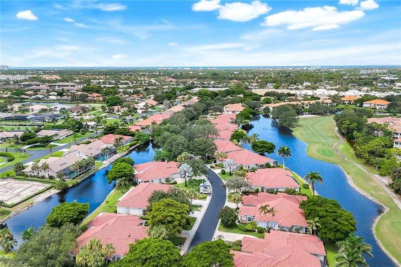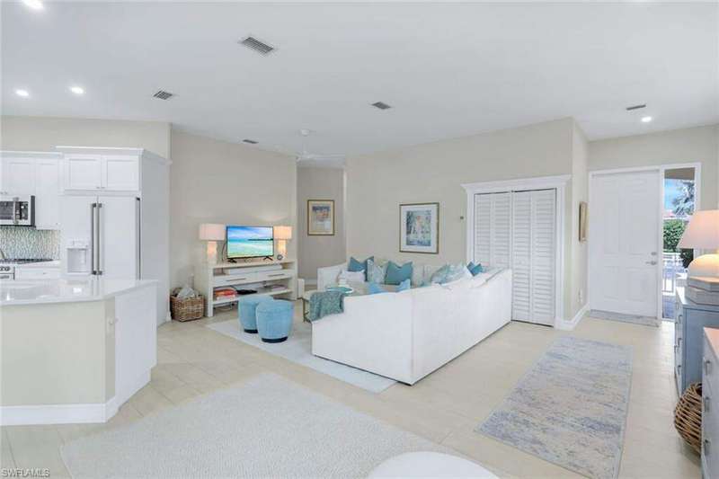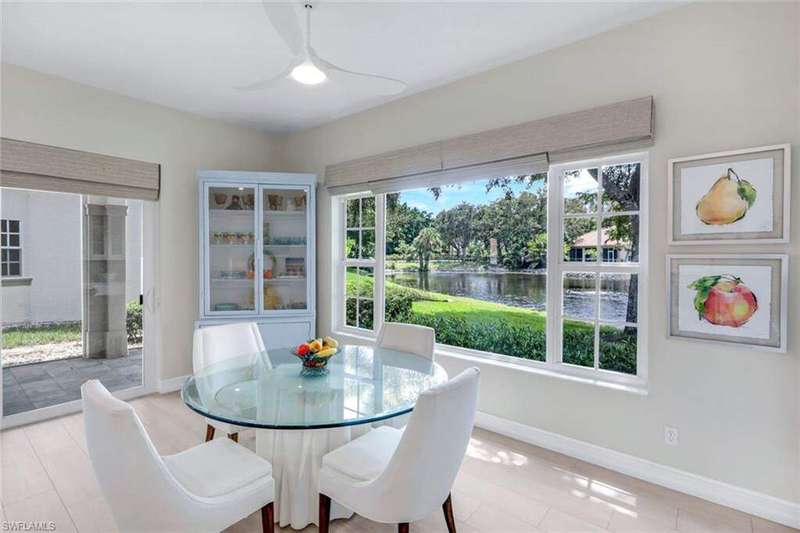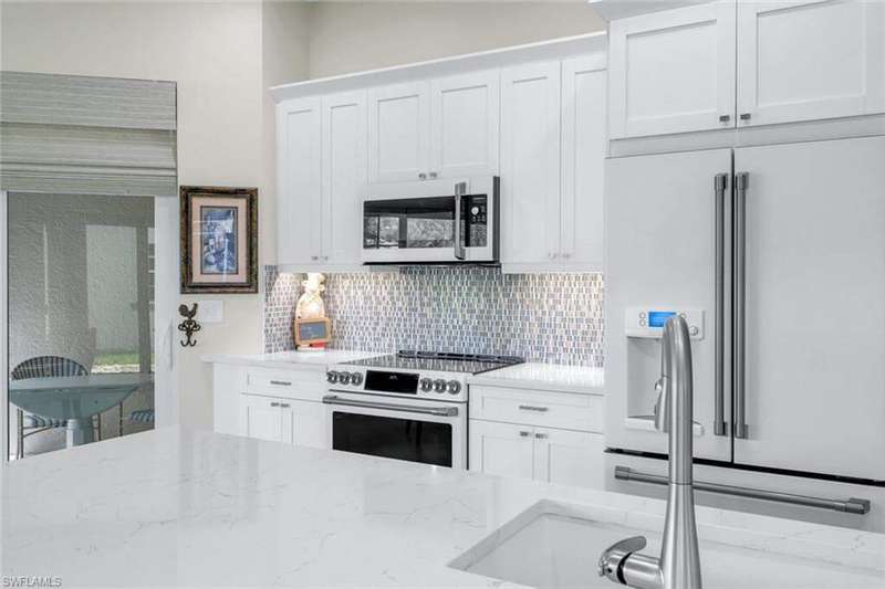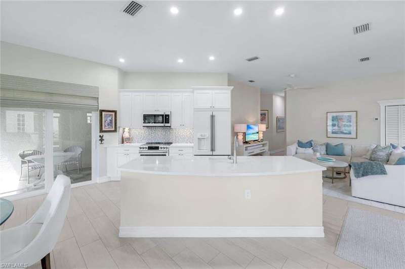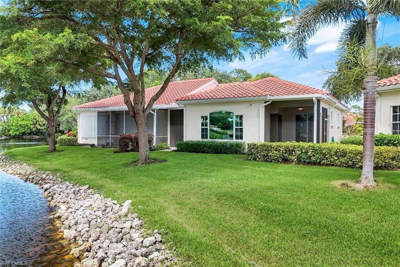 Enjoy a beautifully park-like setting with SOUTHERN EXPOSURE lake views from this completely RENOVATED attached home with a side entry 2-car garage. Surrounded by windows and water, the home offers the tranquil feel of living on an island with gorgeous natural light throughout. The home has been renovated from top to bottom and is a real "WOW" as soon as you enter. Features Include- 12x30 ceramic tile floors throughout, STORM RATED SLIDING GLASS DOORS AND WINDOWS, Solid wood cabinetry with roll-out shelves & abundant storage, Custom primary closet from floor-to-ceiling with professional organization, custom designer window treatments, GE Cafe stainless steel appliances, both bathrooms have been beautifully renovated with fresh finishes. All surfaces are light, bright, and neutral, creating a clean, modern, and airy feel. Modern primary bath featuring a frameless glass shower with seat & shampoo niches, Fresh updated finishes that make this home a true delight to show. Two screened-in lanais frame the home, offering the perfect spots to enjoy lake and landscaped views. The community pool is just down the street, and the clubhouse is a short walk away. This maintenance-free lifestyle includes Internet, cable, exterior maintenance, lawn care, and reserves-with the master association dues included in your fees. All you need to do is arrive and start living the Florida lifestyle. The Roof was replaced in 2018. All roof replacements are INCLUDED in the monthly HOA. The location is superb-JUST 3 miles to the BEACH and minutes to shopping, dining, and entertainment. Short drive to Mercato, Coconut Pointe Mall and RSW airport.