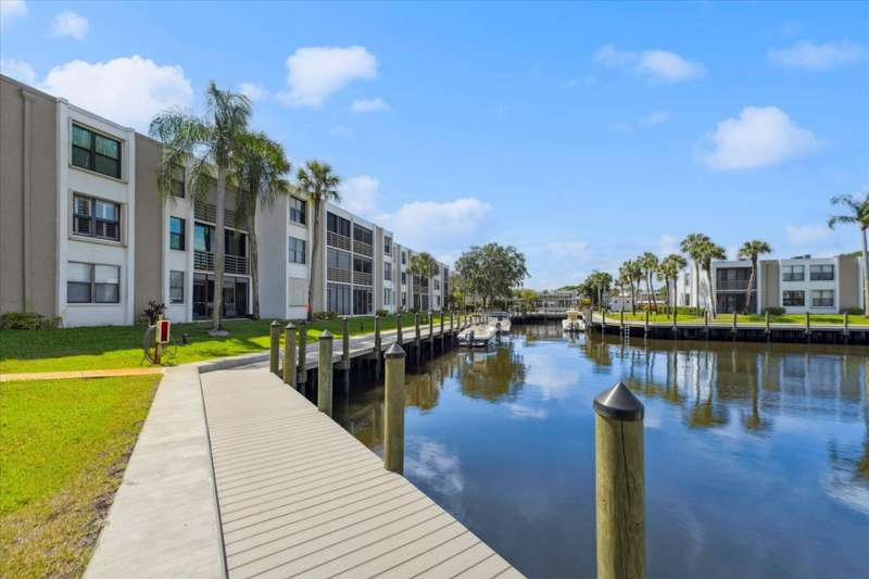 Explore waterfront living in a serene 55+ community. Prepare to be captivated by breathtaking views of the water from this 2/2 second floor unit. The spacious interior is complemented by an abundance of natural light, creating an inviting atmosphere throughout. Both bedrooms offer comfort, privacy, and ample closet space. This residence boasts amenities including an elevator for easy access, as well as a washer/dryer conveniently located within the unit. Covered parking ensures your vehicle is always protected, just steps away from your front door. For boating enthusiasts, this community is a dream come true with accommodations for vessels up to 36ft and ocean access without any fixed bridges. Conveniently located near downtown Stuart.