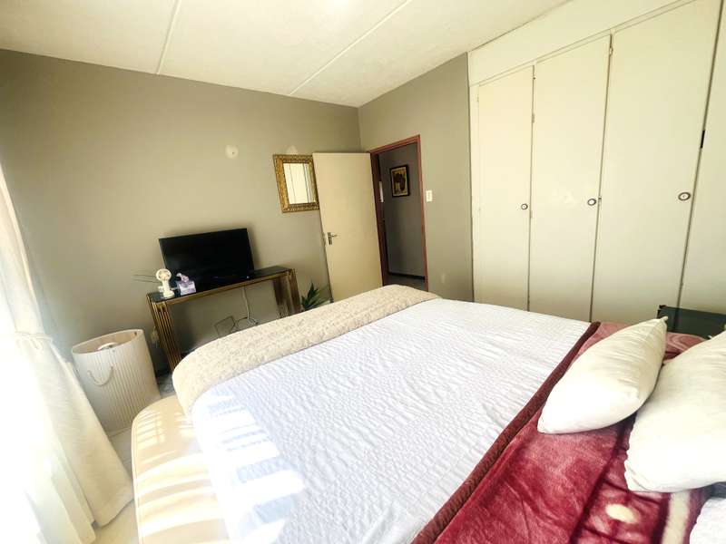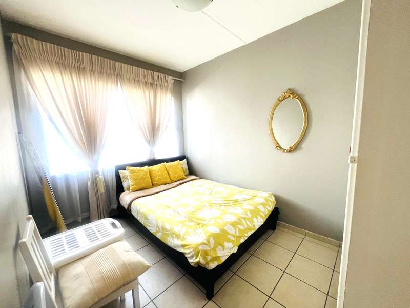 Come and view this stunning 2 bedrooms and 1 bathroom apartment in a prime location in Buccleuch. The property is strategically located close to Woodmead , Midrand and Sandton. The nearby highways are N1, M1 and N3,making it easy for commuting to work. The property offers : - Open plan kitchen with built-in cupboards and stove, -A lounge, and a patio ovelooking the backyard garden, - 2 bedrooms with built-in cupboards, - A bathroom with a bath tub and a shower, - Lock-up garage, - kids play area, - and a communal swimming pool. Book a viewing appointment today!