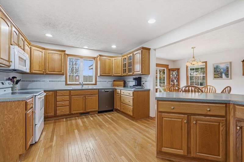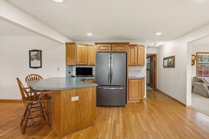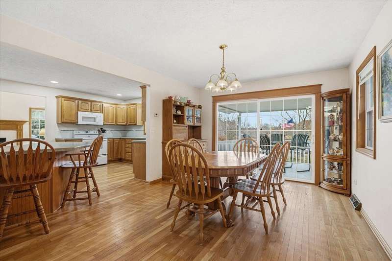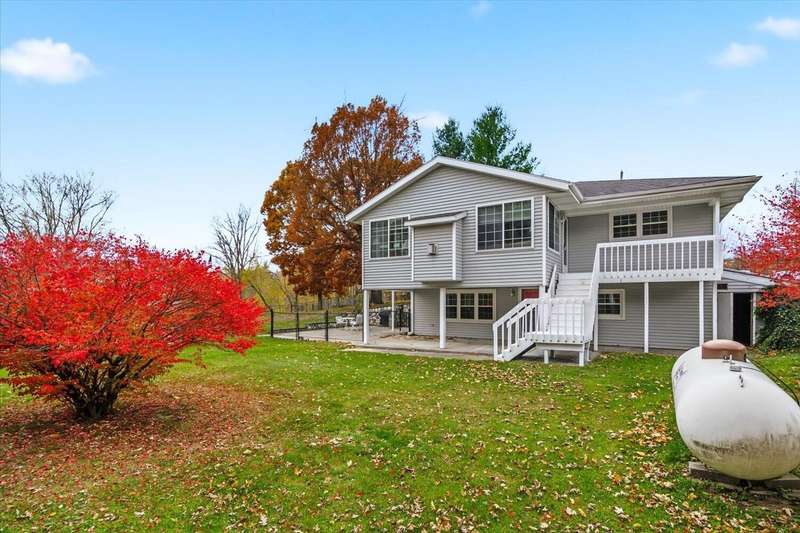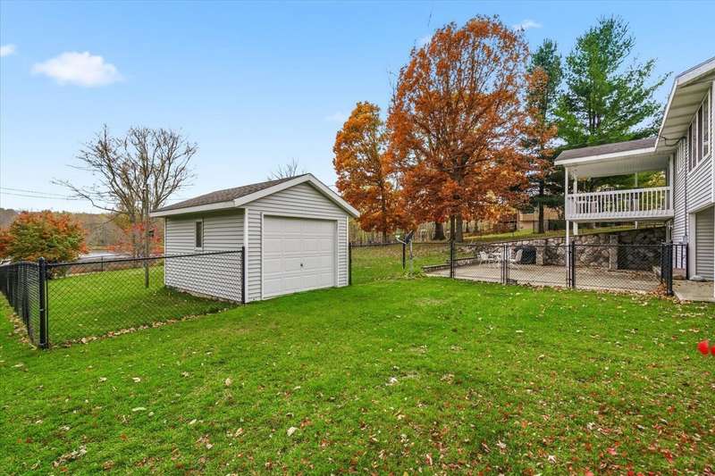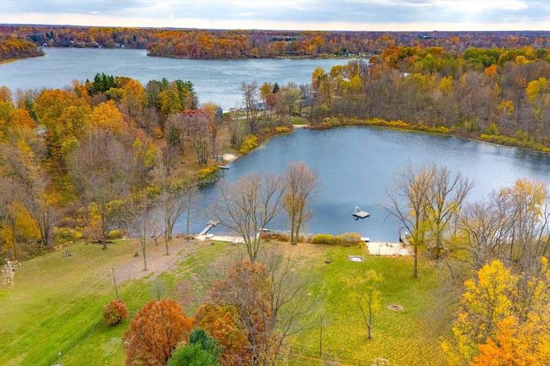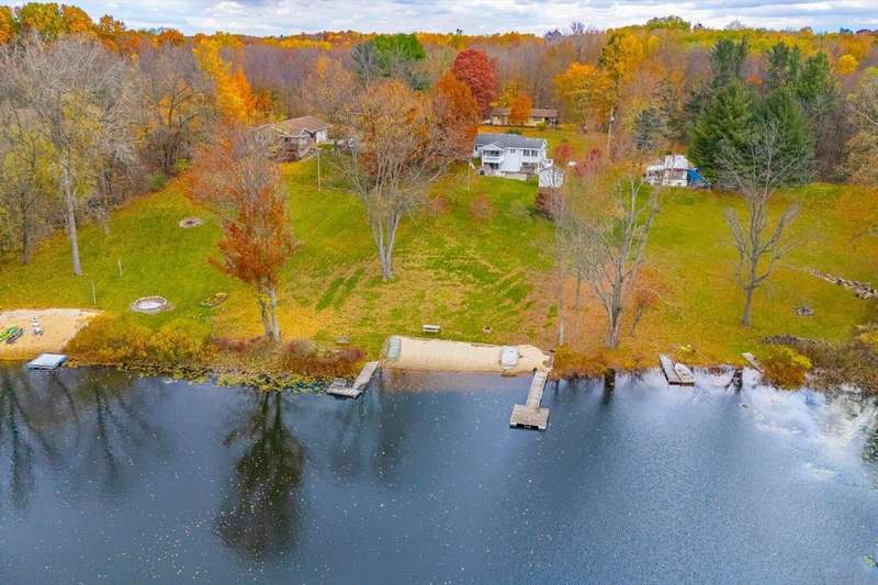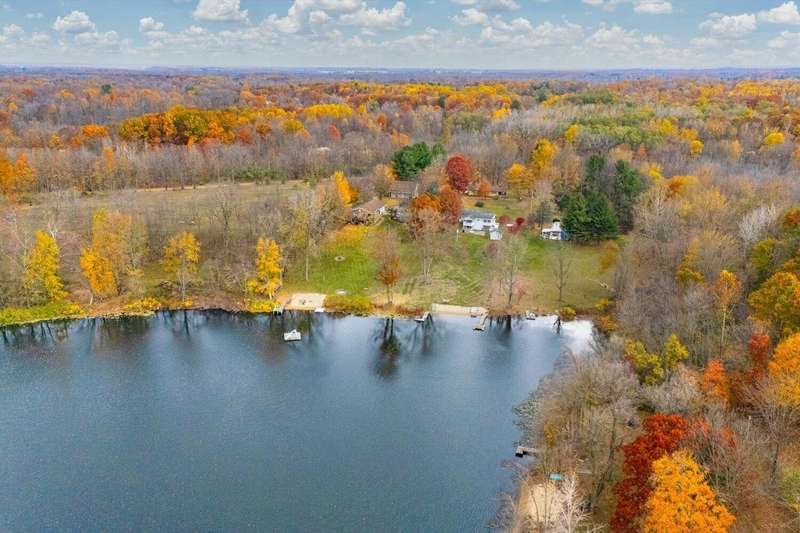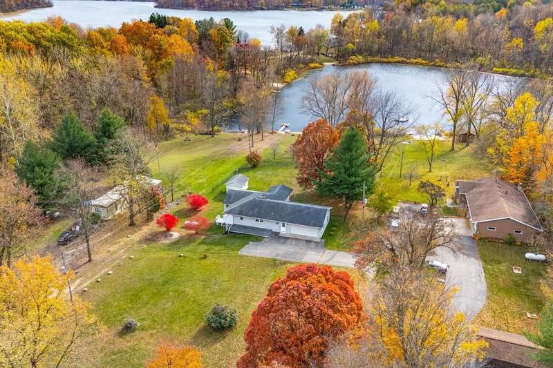 Experience the serenity of this nearly of nearly 1 acre setting on the very peaceful Little Eagle Lake. Beautifully updated home with over 2000 SqFt of living space which features ah abundance of natural light and wonderful views of the lake. You are welcomed home by the large living room with vaulted ceilings and an attractive gas fireplace plus a wall of windows. Nicely remodeled kitchen has ample counter and cabinet space. Formal dinning room flows nicely from the kitchen. Spacious primary bedroom suite highlight the 3 bedrooms all of which are good sized. Light and bright with lower level has a large family room and 3rd full bathroom. Laundry completes the main level. Enjoy this spectacular setting from the covered deck and large patio. Plus their is a large storage shed.
