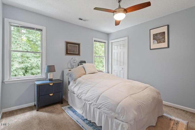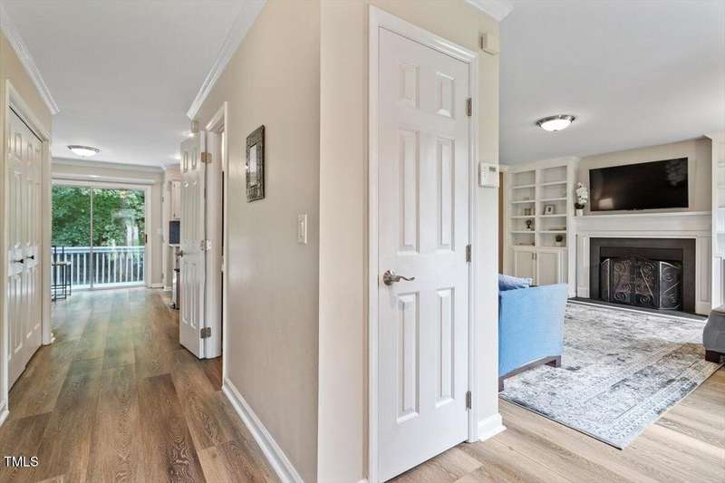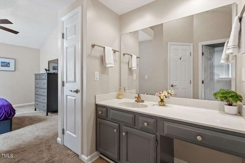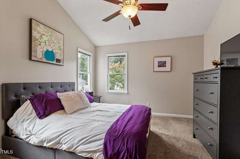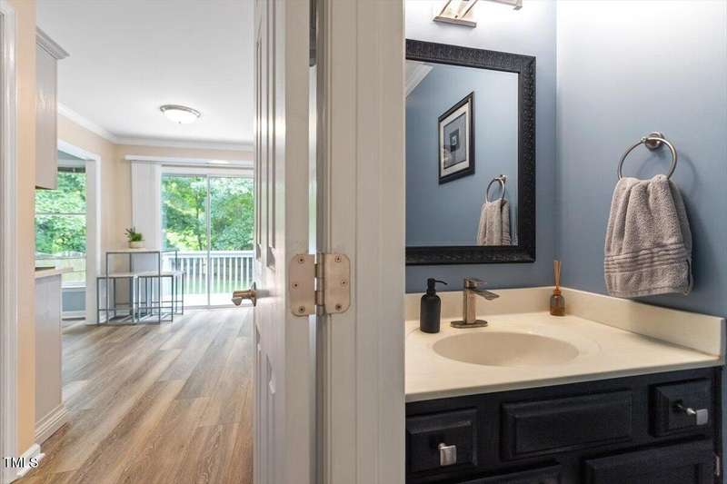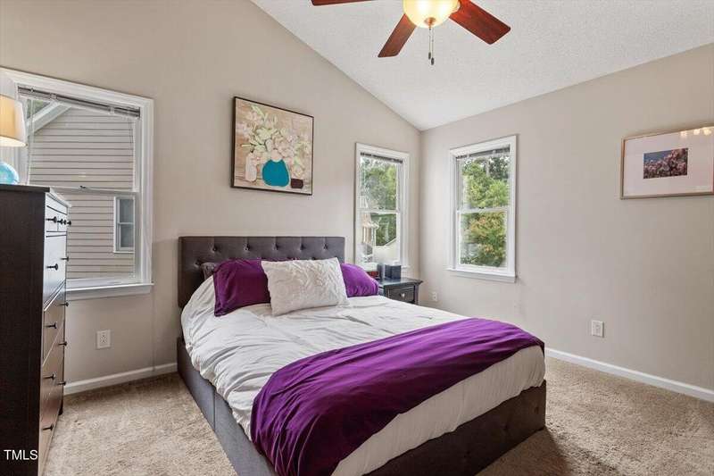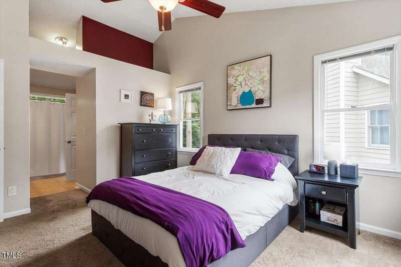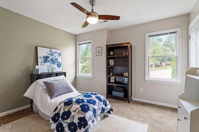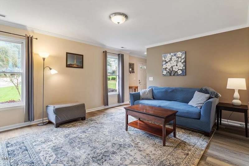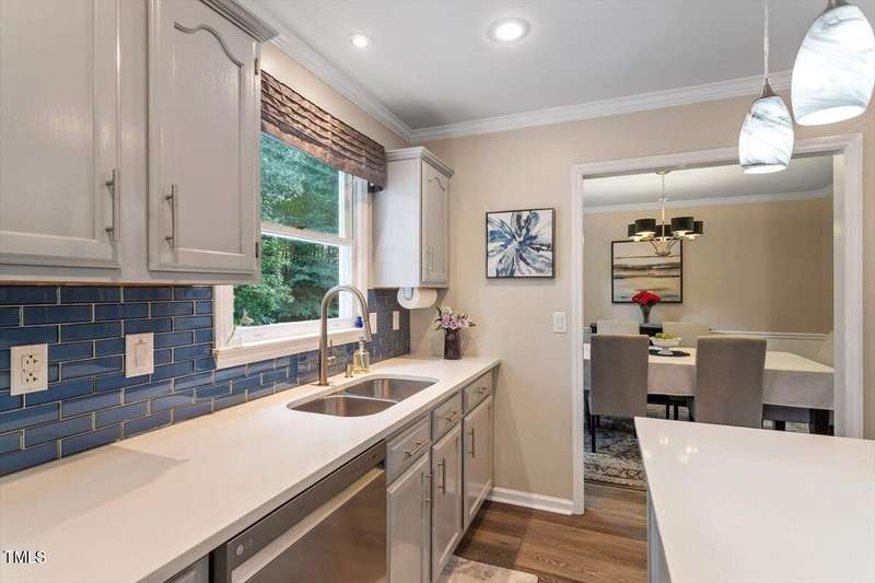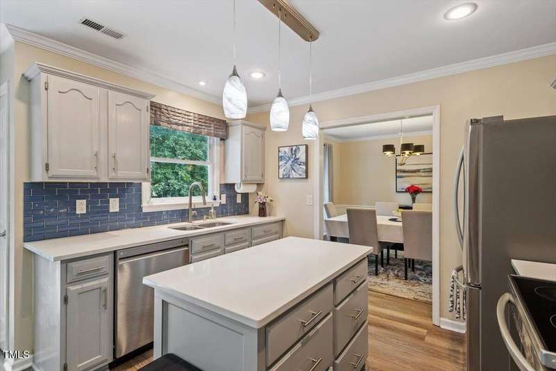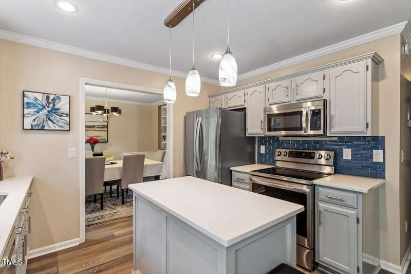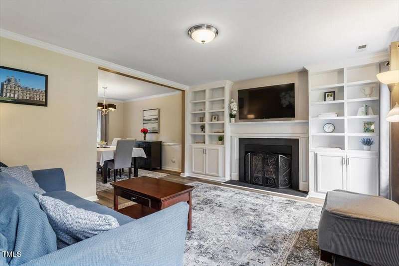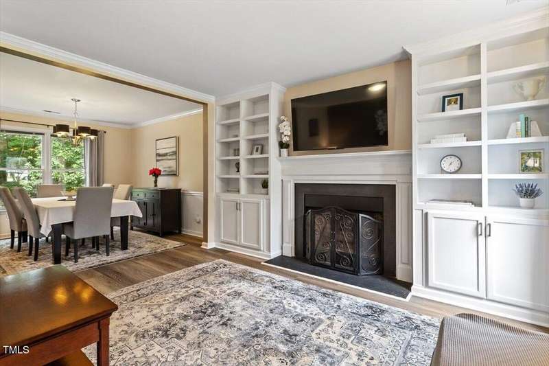 In the heart of Cary minutes to wonderful schools, shopping, restaurants, parks, greenway paths. Sited on a .41-acre quiet cul-de-sac fully fenced lot with wooded back drop. Open flowing floor plan fills with natural light; gorgeous ''hardwood'' style LVP flooring. Spacious family room with custom built in book shelves and cabinetry. Formal dining room can accommodate larger gatherings. Fully updated gourmet chef's kitchen with quartz countertops, center island, beautiful tile backsplash, ss appliances. Flexible sun room with vaulted ceiling also makes a great home office. Primary suite also has a vaulted ceiling, private bath, and large closet. Large sun deck overlooking level private yard. 2017 new roof, 2018 A/C, 2024 water heater, 2025 siding repairs & exterior paint. Seller offering $3,000 credit to replace carpet after closing or $3,000 in seller paid closing costs