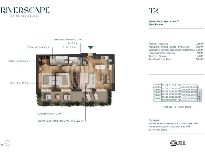Apartamento T2 novo, com 90 m2 de área bruta privativa e varanda, no Riverscape, no Cais do Ginjal, em Almada. Os apartamentos dispõem de cozinhas modernas, design contemporâneo, janelas do chão ao teto e varandas amplas que oferecem vistas para o rio Tejo. A fachada preserva o seu charme clássico enquanto integra elementos modernos que dão vida ao carácter histórico. Este novo projecto dispõe de jardim, piscina, ginásio totalmente equipado, áreas comuns e espaços exteriores e interiores impressionantes, perfeitos para qualquer ocasião familiar ou reunião de trabalho. Localizado numa zona tranquila que permite desfrutar de belos pores do sol e do charme da envolvência, estando simultaneamente perto da capital. O acesso a Lisboa é rápido: 8 minutos de barco, 20 minutos de automóvel, e o Aeroporto Internacional encontra-se a apenas 25 minutos. Categoria Energética: B #ref:90243