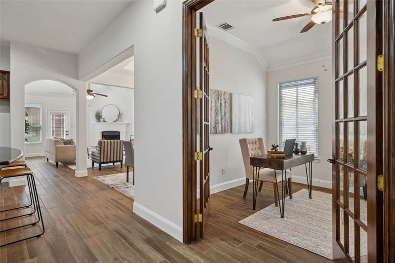 Great Opportunity! Back on the market by no fault of the sellers! WOW! From the moment you drive up to this beautiful meticulously maintained home you'll be drawn in by the charm and warmth! The large front entry with high ceilings and beautiful front door will make you want to call it Home! This 3 bedroom + private study home offers the perfect blend of elegance, comfort, practicality and an unbeatable location!The large gourmet kitchen features elegant granite counters, gas cook top, abundant cabinetry and counter space, walk in pantry, filtered water at the sink and a breakfast bar perfect for informal meals. The large dining area with a wall of bay windows is ideal for hosting or perfect for informal or formal dining! A nice sized private study with glass French doors and cabinetry is ideal for media equipment or home office organization - perfect for working at home! The nice sized family room is open to the kitchen and dining room areas. The split primary suite is a peaceful escape with views to the backyard. The spa like primary bath has a garden tub, separate shower, dual sinks and a huge walk in closet. Two additional good-sized bedrooms in the front of the home share a full sized bath. Enjoy the outdoors on the enlarged patio perfect for relaxing or entertaining. Thoughtful updates include gorgeous porcelain tile floors throughout (no carpet). neutral paint, baseboards, lighting, expanded back porch and water heater. Nestled on a quiet interior lot, yet close to lakeside trails, top rated school, shopping and dining this location is hard to beat. This home offers the lifestyle you've been searching for! Opportunities like this don't come often, come and see it before it's gone!