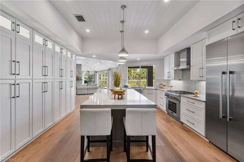 NO WAITLIST FOR GOLF OR SOCIAL MEMBERSHIP! Beautifully renovated custom estate home on a highly desirable street in exclusive Quail Creek Estates! This stunning single-level home sits on over an acre on a quiet cul-de-sac street. Enjoy unmatched privacy and gorgeous golf course (overlooking the 9th hole of the Quail course) and lake views from over 2,500 sq. ft. of fenced outdoor living space featuring a gas heated resort-style pool, spa, and pergola. Renovated with well- selected upgrades, this 5-bedroom+den, 5 full bath smart home blends comfort, style, and functionality. Highlights include wide plank European Oak hardwood floors throughout the main living area, custom woodwork, a wood-burning fireplace, and a gourmet kitchen with Thermador appliances, a walk in pantry and tons of cabinet storage. The oversized living, family, and primary bedroom offer exceptional space for entertaining and everyday living. Four additional guest bedrooms and a separate den/flex space provide room for everyone to spread out. Additional features: 3-car garage, impact windows and doors (2014), a 500 gallon buried propane gas tank, two new hot water heaters (2024 and 2025), a well for irrigation (saving you money on your water bill) and low HOA fees. The roof is from 2014. Quail Creek is a gated community conveniently located to shopping and dining and access to I-75. Located in popular North Naples, While membership to Quail Creek Country Club, a resort style country club, is not required, the majority of residents join the club. Optional membership opportunities include social and golf memberships. There is currently NO WAIT list for golf or social memberships. Golf members enjoy two championship courses masterfully designed by the legendary Arthur Hills. They have an active tennis, bocce and pickleball program and they are building 3 new padel courts. The club also has a state of the art fitness center, a full service spa, tennis/golf/pickle pro shop and more. The club also offers a popular junior golf performance academy and tennis program for the kids. Enjoy luxury living and resort amenities in one of Naples' most prestigious 36-hole golf communities - Quail Creek Estates.