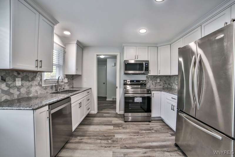 Welcome to 8639 Griffon Avenue, a spacious 4-bedroom, 2.5-bath brick home located in the desirable Cayuga Island/Lasalle neighborhood of Niagara Falls. With nearly 2,000 square feet of living space, this property combines classic charm with modern potential. Built in 1955, on high ground, The home showcases solid construction and timeless design, featuring a cozy fireplace as the centerpiece of the living area. The kitchen is recently remodeled boasting new soft close cabinets, backsplash, granite counter tops, some new appliances and flooring. All new 1/2 bath too! Living room and dining room boast new flooring, as well. The generously sized bedrooms, with hardwood, and multiple bathrooms, provide room to spread out, while the durable brick exterior adds curb appeal and long-lasting value. Primary bedroom includes a full bath and walk-in closet.Some new windows, 3 yr old 98% efficient furnace-2 yr old HWT and Sump Pump.Set in a residential area, directly across the street from Jane Park, the home offers easy access to shopping, dining, and schools, just minutes from the natural beauty and attractions of Niagara Falls. With its spacious layout, strong bones, and prime location, 8639 Griffon Avenue presents a fantastic opportunity to personalize and create the home of your dreams. Offers due 11/24/2025 at NOON.