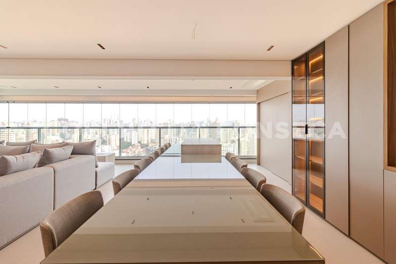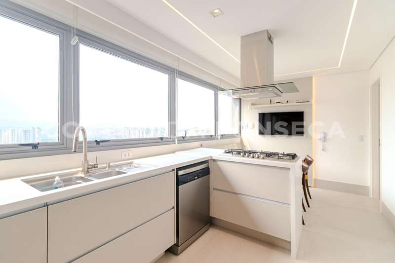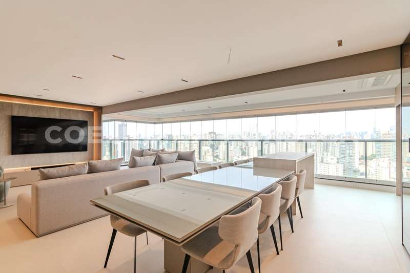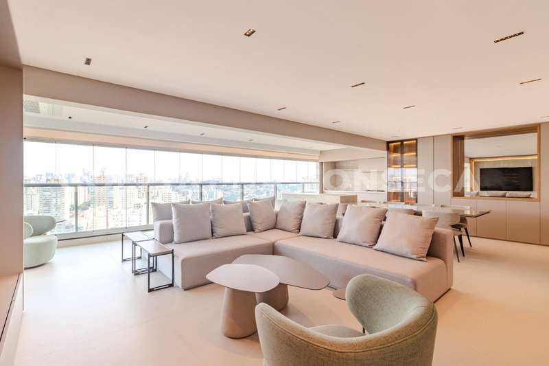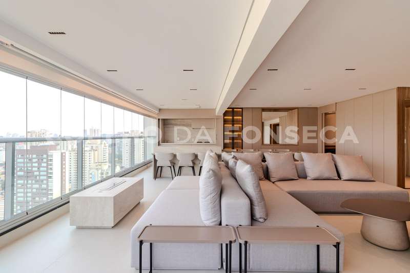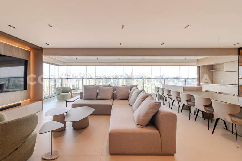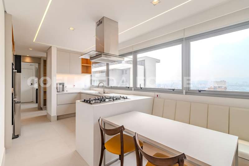 O imóvel vem completamente mobiliado, com acabamentos de altíssimo padrão, móveis modernos e eletrodomésticos de última geração. Todos os ambientes são climatizados com ar-condicionado, e as persianas automatizadas proporcionam ainda mais conforto. O projeto de iluminação é sofisticado, criando uma atmosfera aconchegante em todos os cômodos.\r
