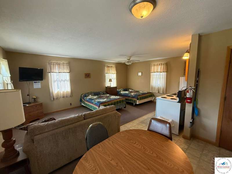 Cabin 7 is a single room with full kitchen, range with oven and refrigerator, bath with shower only. Two full-size beds, twin bed and hide-a-bed. Just down the road from Truman State Park Marina giving you quick and easy access to Truman Lake, while also being close to Drake Harbor where you can access the Lake of the Ozarks. This cabin has been a successful rental and has a long client list. Could be utilized as an Airbnb or long-term rental on the side.